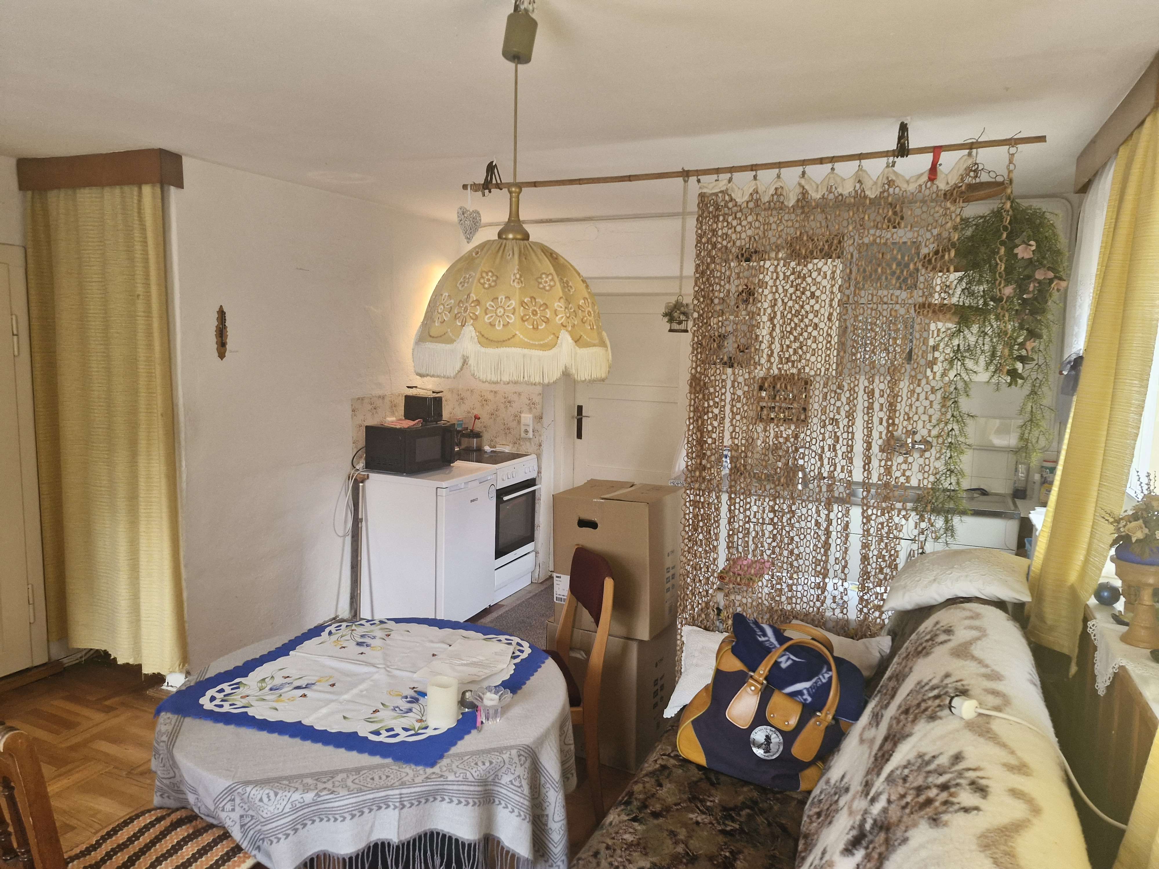 Beim Betreten des Hauses gelangen Sie zunächst in den Flur, der Ihnen Zugang zu den verschiedenen Räumen des Erdgeschosses bietet. Auf der linken Seite befindet sich ein gemütliches Wohnzimmer mit offener Küche – ein idealer Ort, um gemeinsame Stunden mit Familie und Freunden zu verbringen. Daran anschließend liegt ein kleines, separates Esszimmer, das ebenfalls vom Flur aus erreichbar ist. Auf der rechten Seite befindet sich ein helles Kinderzimmer sowie das Badezimmer, ausgestattet mit Badewanne, WC und Waschtisch. Eine Tür im Flur führt zudem in einen kleinen Gewölbekeller.