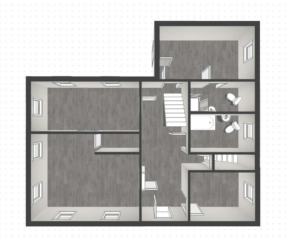 Über eine Holztreppe gelangen Sie ins Obergeschoss. Hier erwarten Sie vier Zimmer, die flexibel als Schlaf-, Kinder-, Arbeits- oder Gästezimmer genutzt werden können. Der Dachboden bietet zusätzlichen Stauraum, lässt sich bei Bedarf aber auch zu weiterem Wohnraum ausbauen.