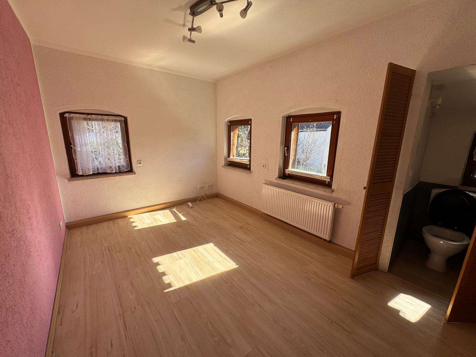 Grundsätzlich befindet sich das Objekt in einem soliden und nach einer kleinen Renovierung theoretisch sofort nutzbarem Zustand. Die Immobilie wurde um das Jahr 2000 umfangreich kernsaniert, so wurden die Leitungen erneuert, die Fenster wurden durch doppeltverglaste Holzfenster ersetzt und das Dach neu eingedeckt.