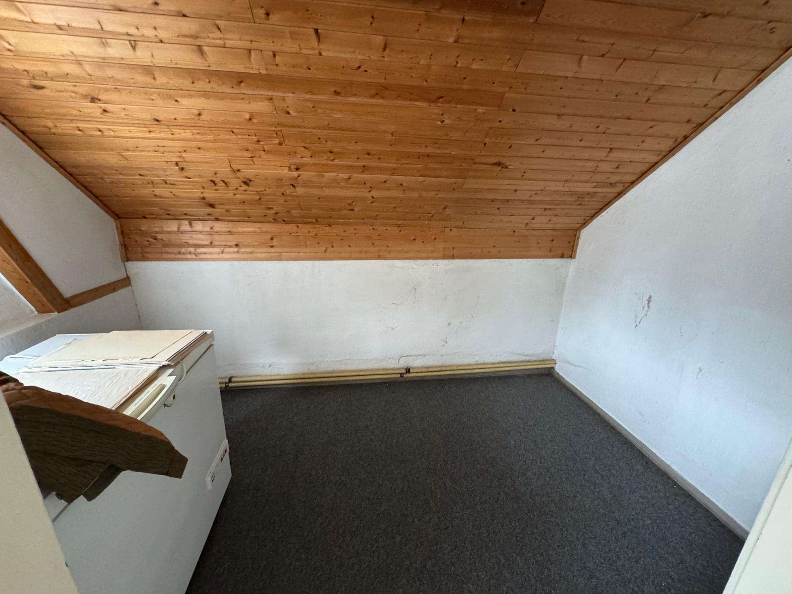 Vom Dachgeschoss aus besteht ebenfalls Zutritt auf die große Terrasse am hinteren Teil des Gebäudes. Das Haus befindet sich in einem soliden Zustand und kann theoretisch mit überschaubarem Renovierungsaufwand wie neuer Fußböden und Wände sofort bezogen werden. Allerdings wäre es ratsam, die noch teilweise vorhandenen alten elektrischen Leitungen auszutauschen.