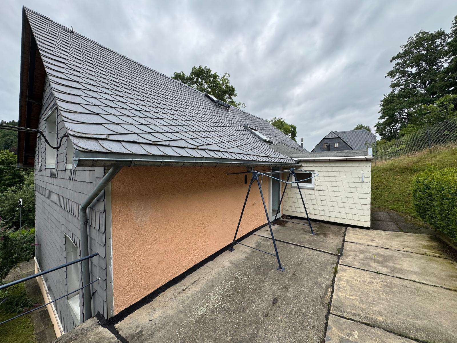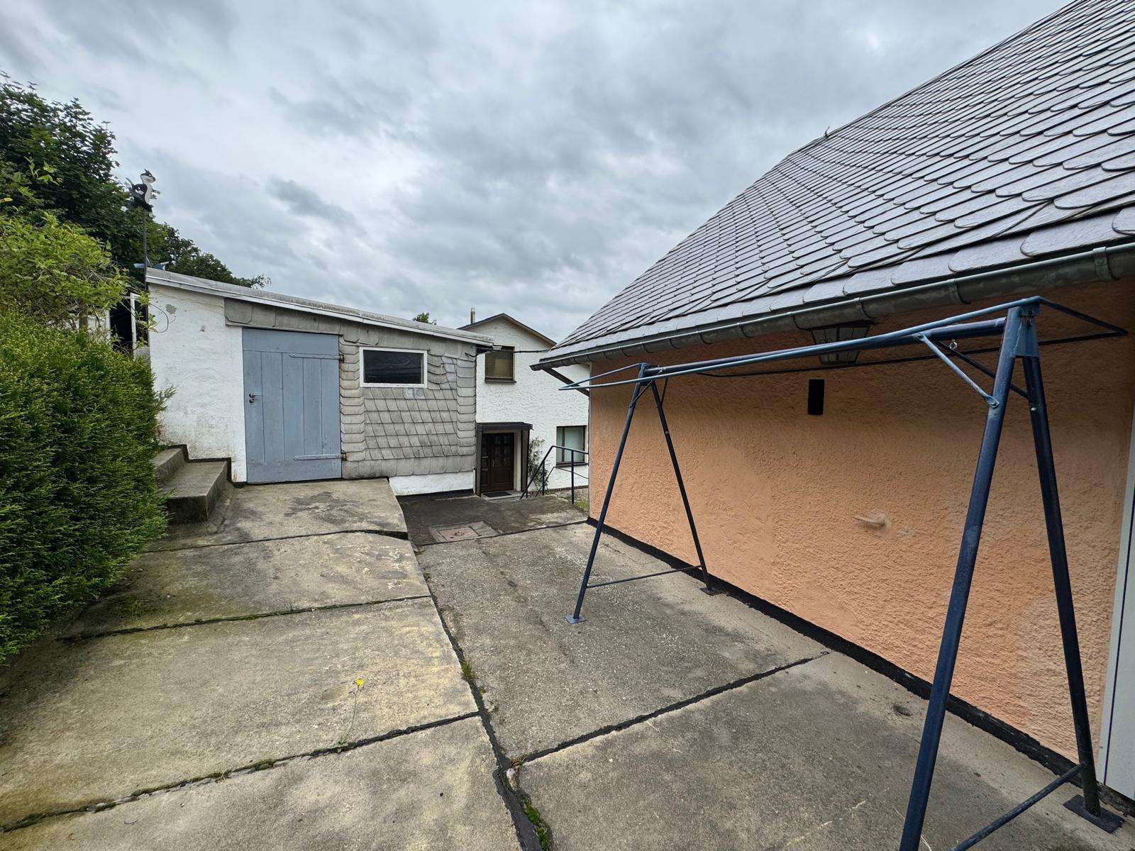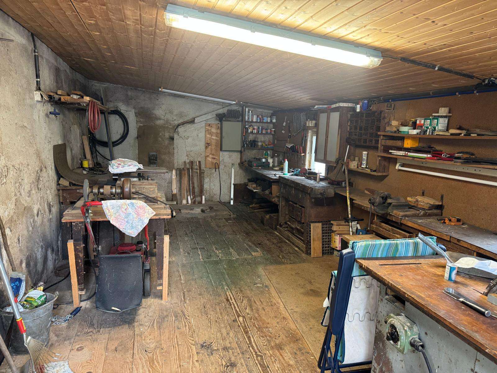 Zum Haus gehört ein massives Nebengebäude, welches sich aus einer Werkstatt und mehreren Abstellräumen zusammensetzt. Das ca. 1500 m² große Grundstück ist mit ausreichend Grünfläche ausgestattet und mit einigen Bäumen und Sträuchern bepflanzt. Allerdings ist hier zu erwähnen, dass sich das Grundstück über einen großen Hang erstreckt und dadurch etwas eingeschränkt nutzbar ist.