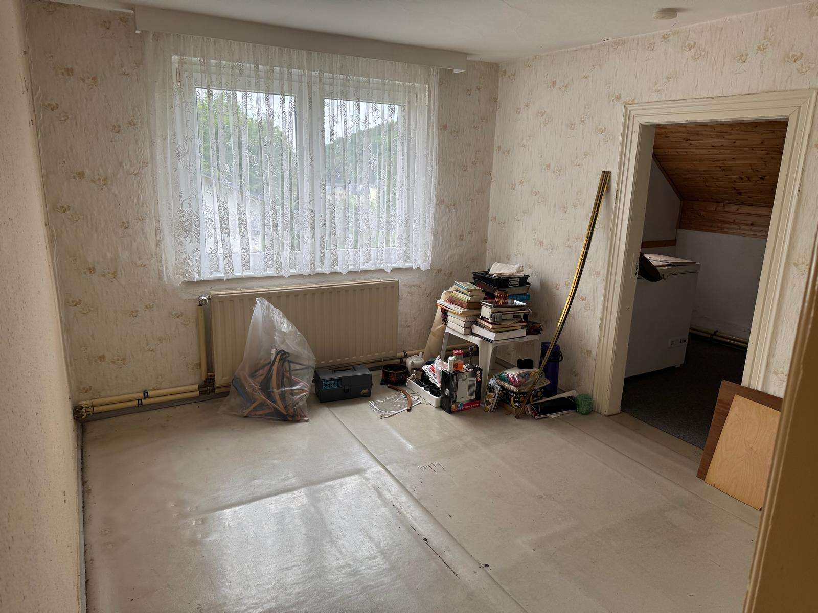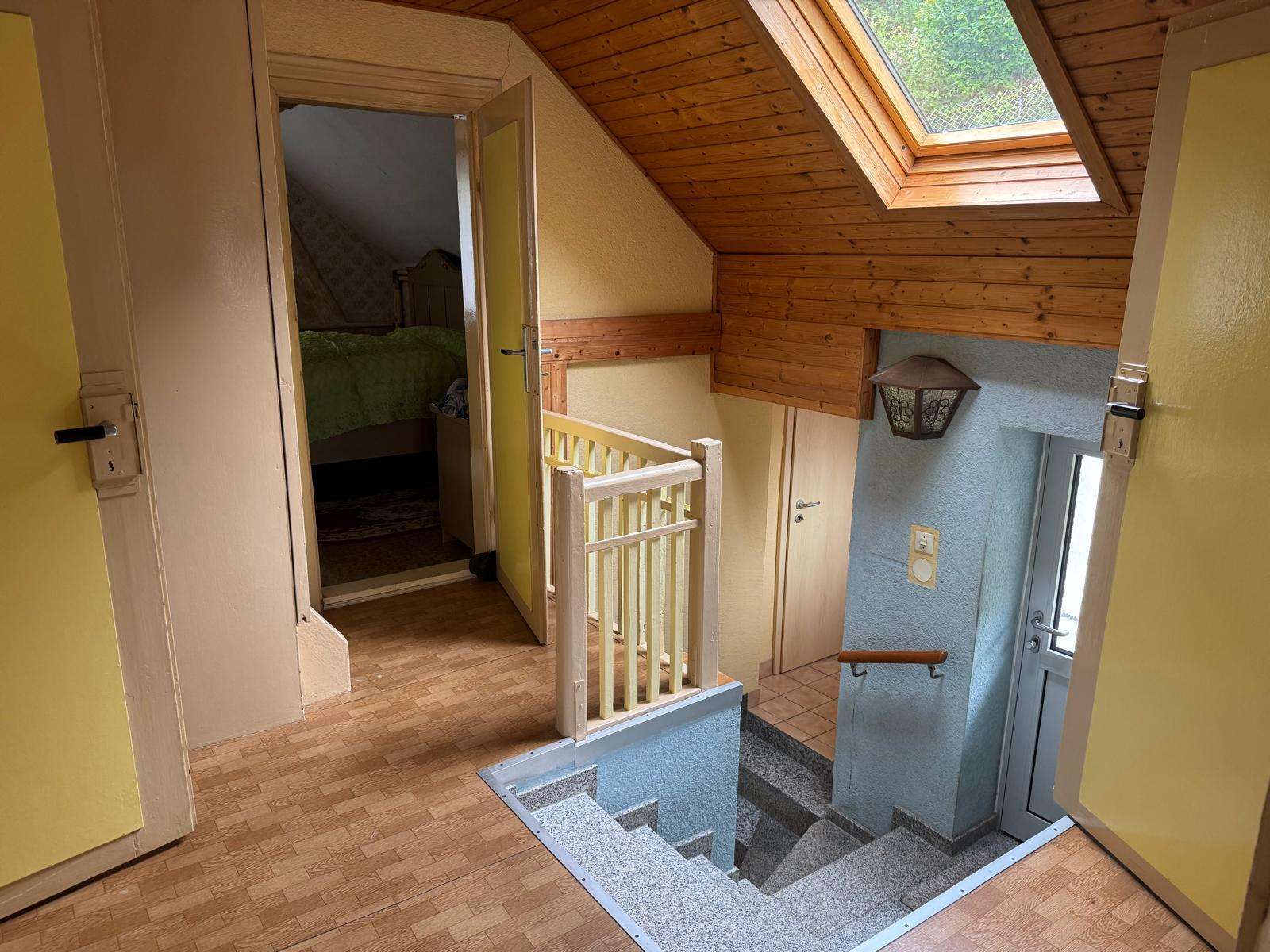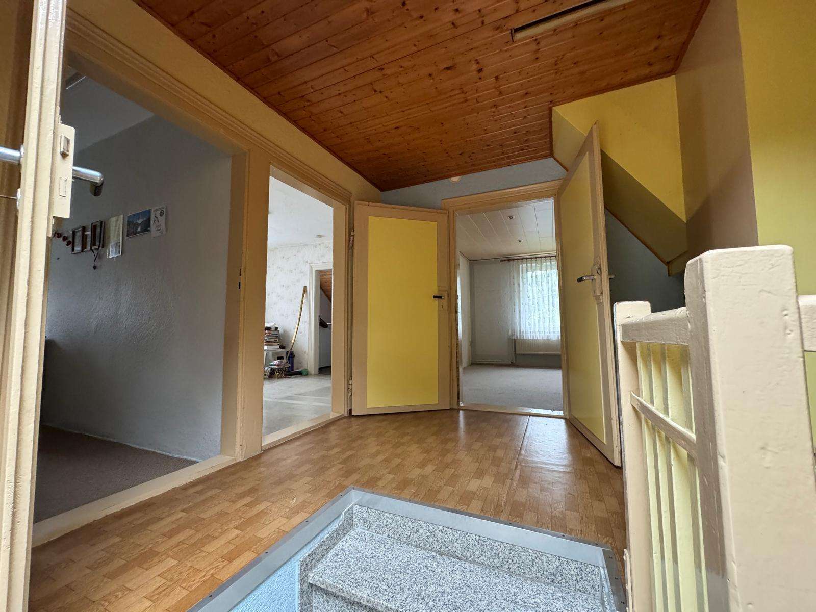 Man betritt das Haus im Erdgeschoss und steht dann im zentralen Flur. Von hier aus sind im Erdgeschoss das Badezimmer mit Dusche, Wanne, WC und Waschtisch sowie das angrenzende Schlafzimmer erreichbar. Weiterhin gibt es im Erdgeschoss die Küche sowie das Wohnzimmer. Über eine massive Treppe erreicht man das ausgebaute Dachgeschoss. Hier befinden sich vier Zimmer, welche je nach Bedarf als Kinder-, Schlaf- oder Arbeitszimmer genutzt werden können. Auch ist hier sicherlich die Veränderung des Grundrisses durch Entfernen einiger Wände möglich, um die Räume zu vergrößern. Weiterhin befinden sich im Dachgeschoss zwei Abstellräume sowie der Zugang zum vorhandenen Spitzboden, welcher für zusätzlichen Stauraum sorgt.
