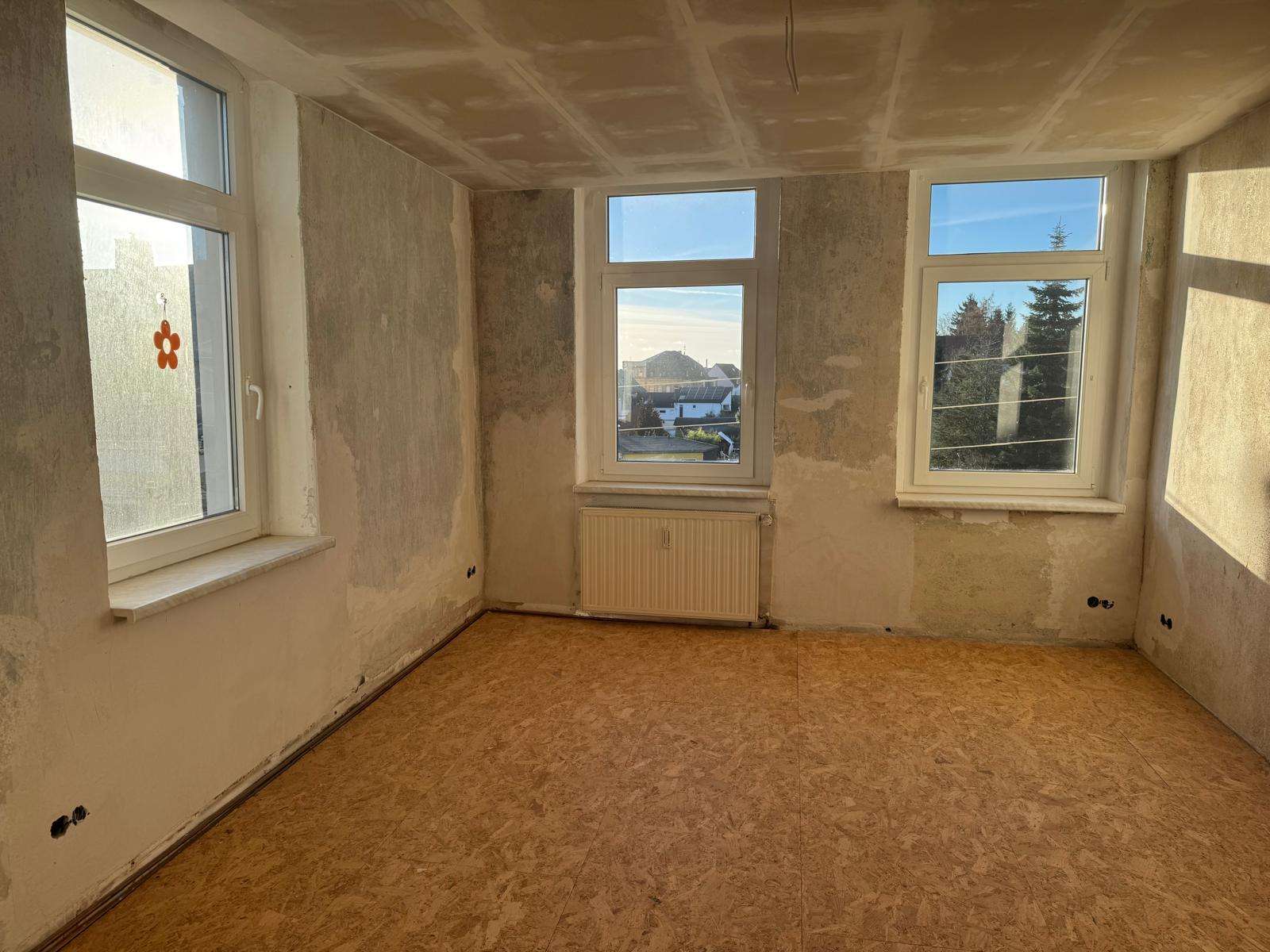 Die Wohnungen im Ober- und Dachgeschoss sind mit relativ geringem Aufwand bezugsfähig, die Wohnung im Erdgeschoss bedarf einer umfangreicheren Sanierung um an den heutigen Wohnstandard anknüpfen zu können.