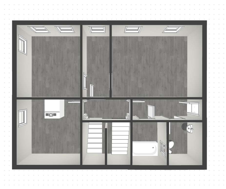 Die Wohneinheit im Dachgeschoss selbst verfügt über eine Küche sowie drei weitere Zimmer, die individuell genutzt werden können.