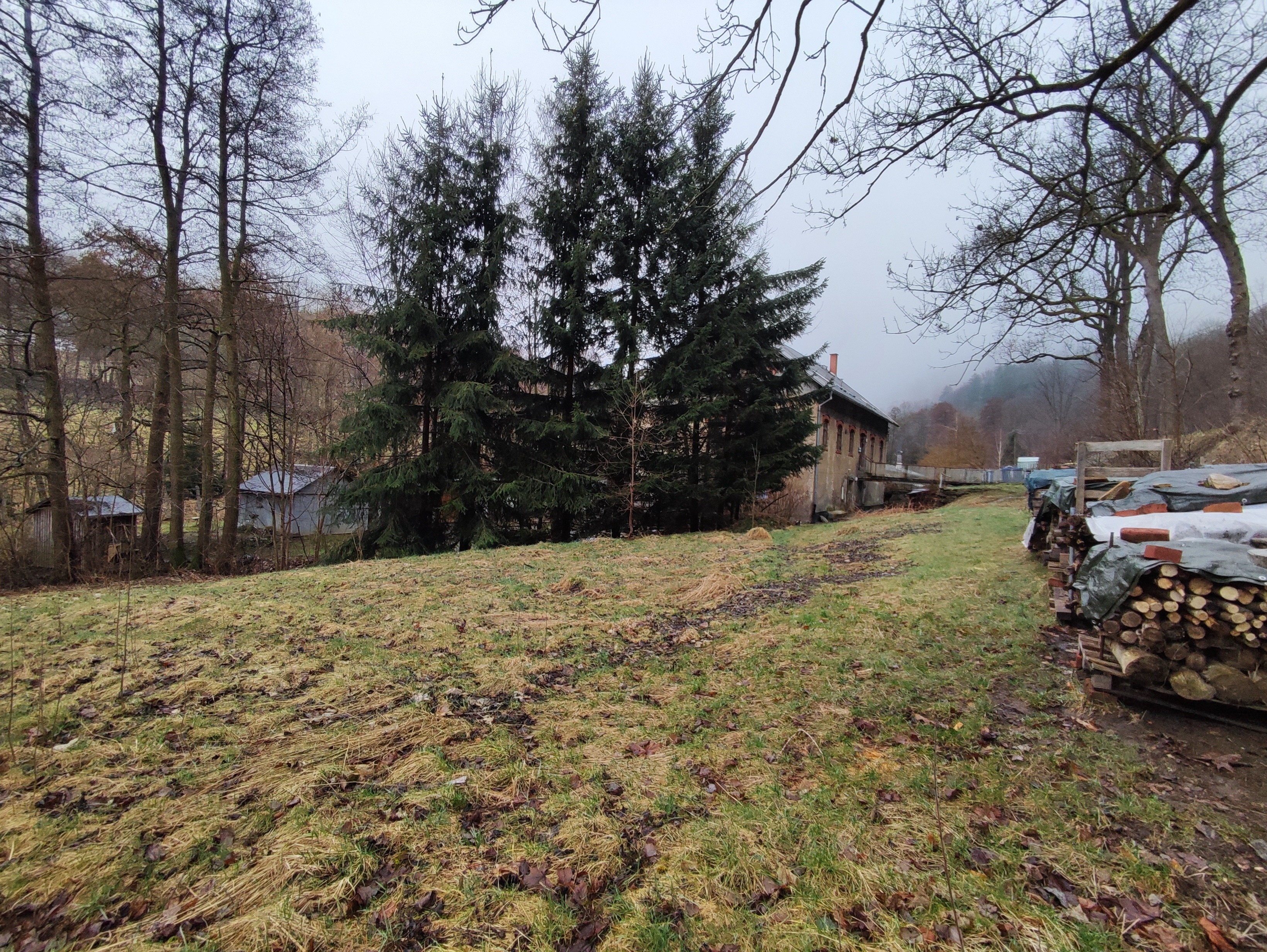 Das große Grundstück bietet den Mietern ausreichend Fläche zur individuellen Nutzung und Erholung. Hier sorgt alter Baumbestand für Schatten und der hinter dem Grundstück verlaufende Bach sorgt im Sommer für Abkühlung. Auch könnten hier weitere PKW-Stellplätze angelegt werden. Die Zufahrt zum Gebäude verläuft über das Nachbargrundstück, wofür es jedoch ein eingetragenes Wegerecht gibt, es ist also jederzeit zugänglich.