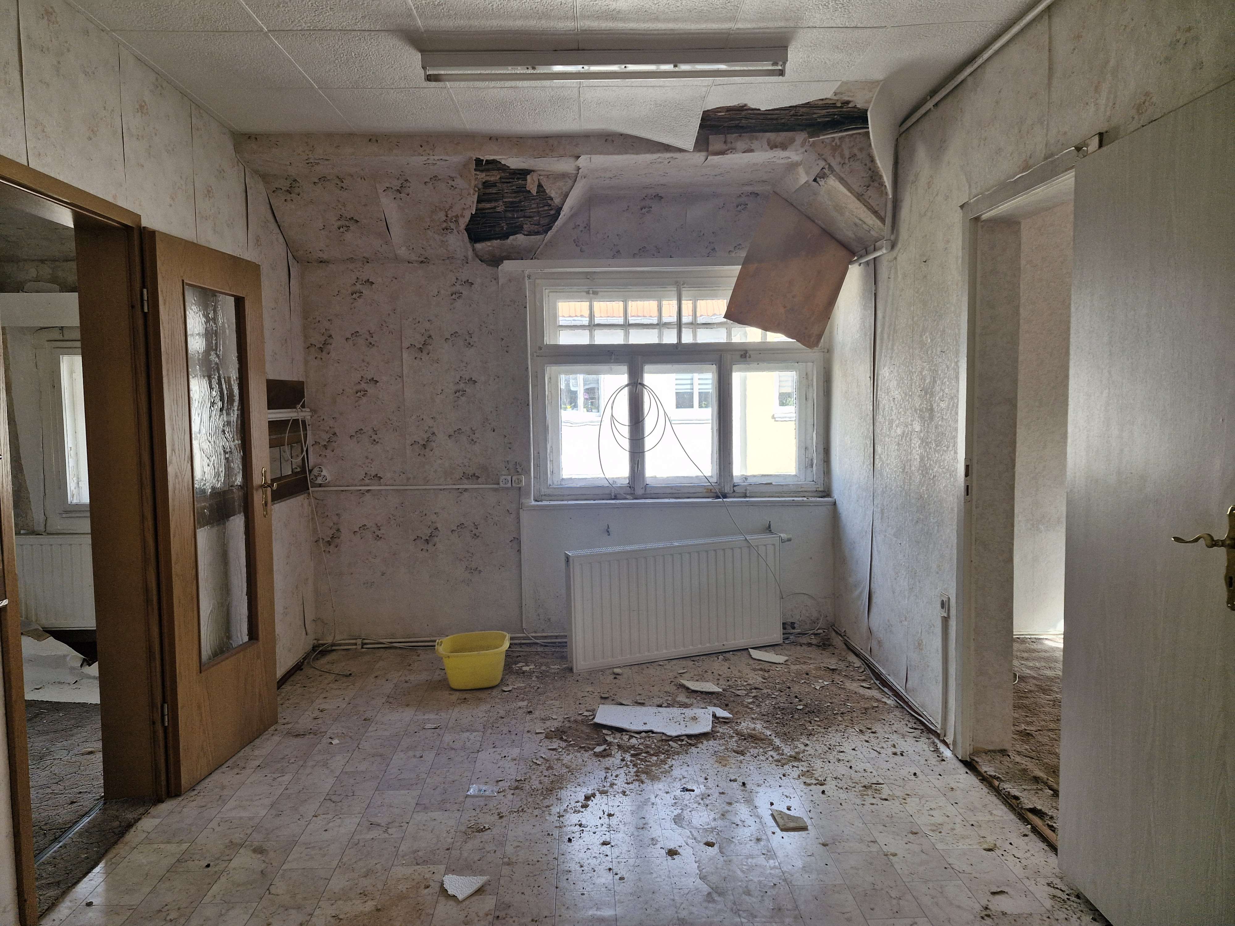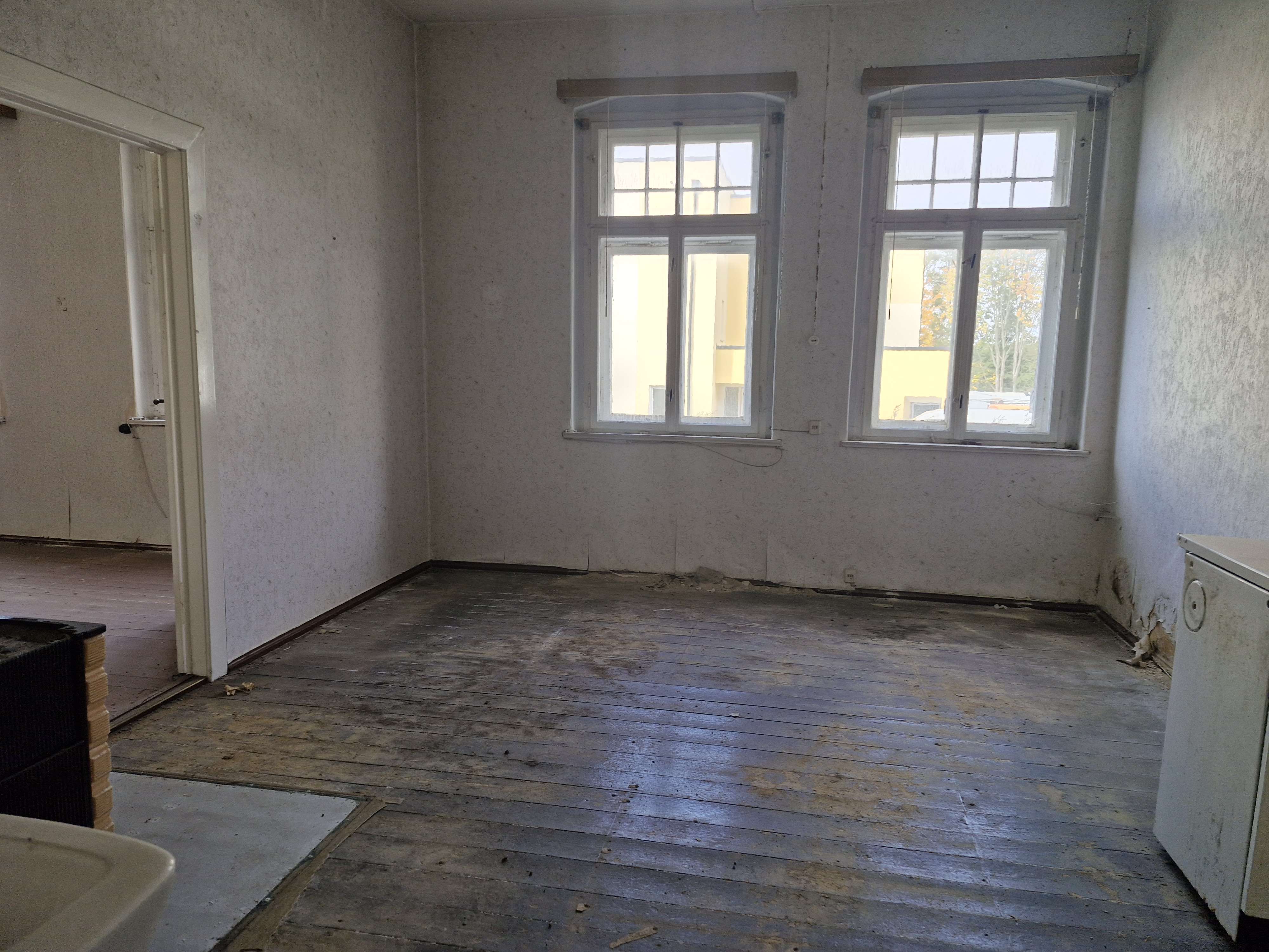 Das Gebäude ist seit längerer Zeit unbewohnt und befindet sich in einem sanierungsbedürftigen Zustand. Eine umfassende Modernisierung in sämtlichen Gewerken ist erforderlich – von der technischen Gebäudeausstattung über Innenausbau bis hin zu energetischen Maßnahmen.