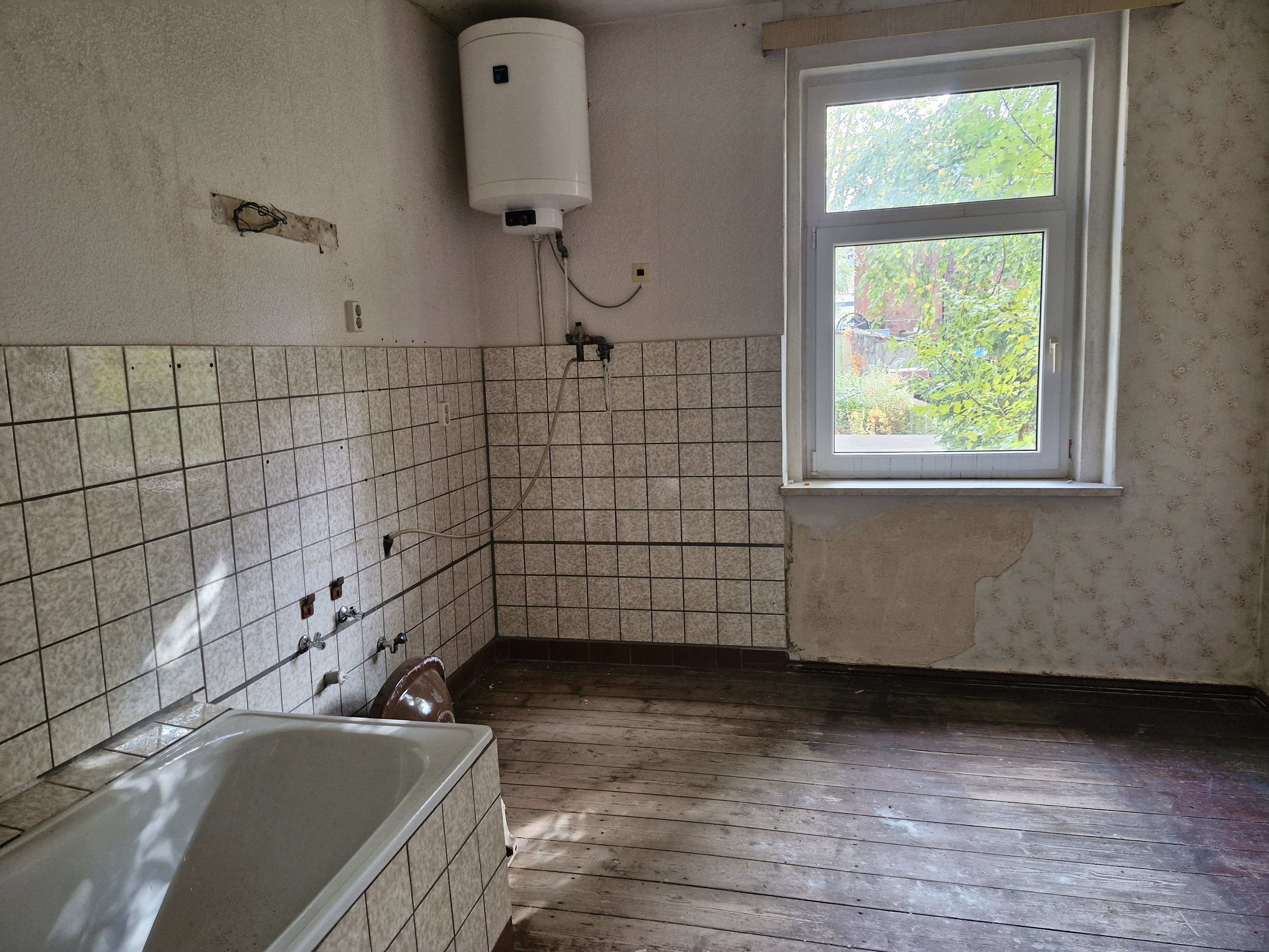 Vorhanden sind jedoch ein funktionierender Strom- und Wasseranschluss, was eine grundlegende Versorgung sicherstellt. Beheizt wurden die Wohnungen bislang über Einzelöfen sowie teilweise Gasöfen.