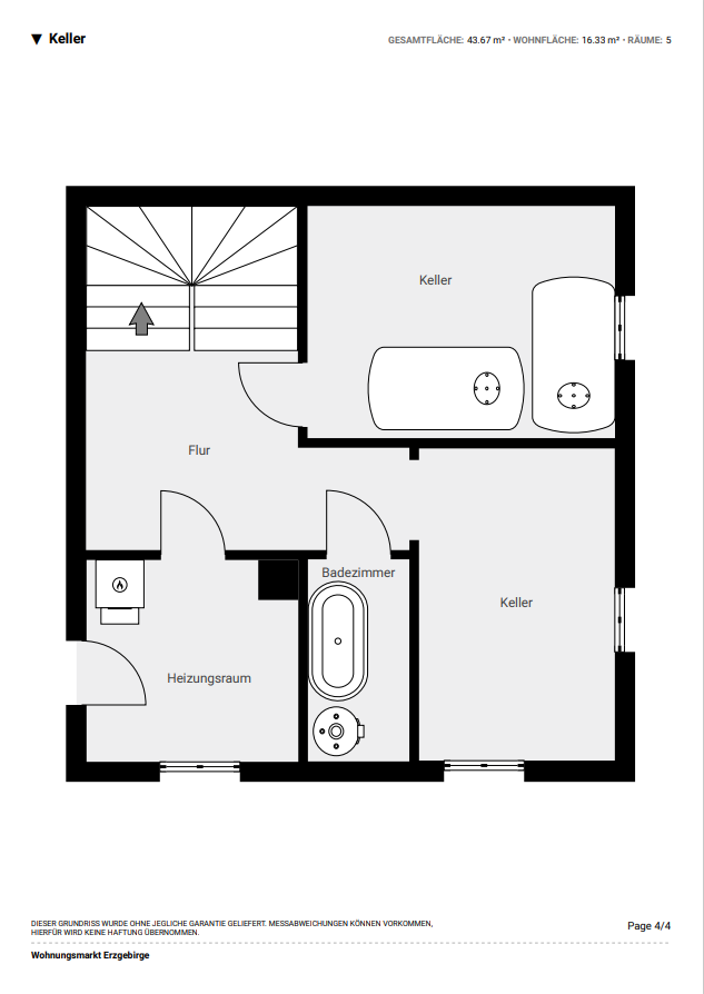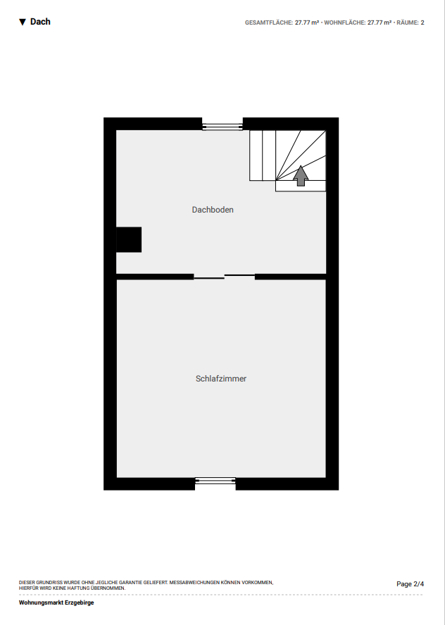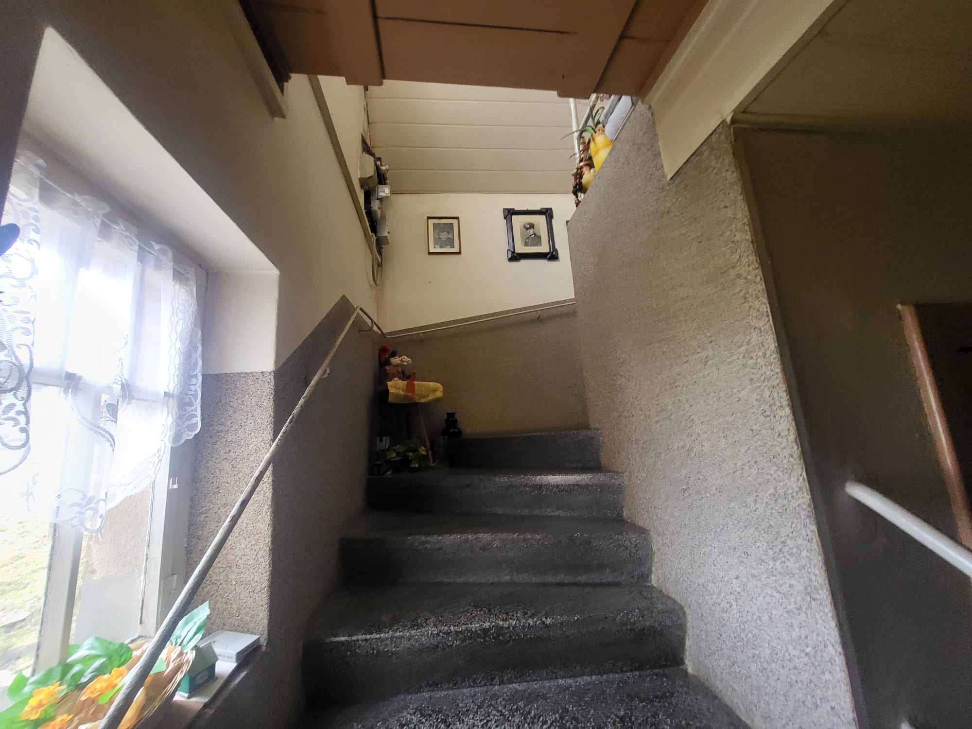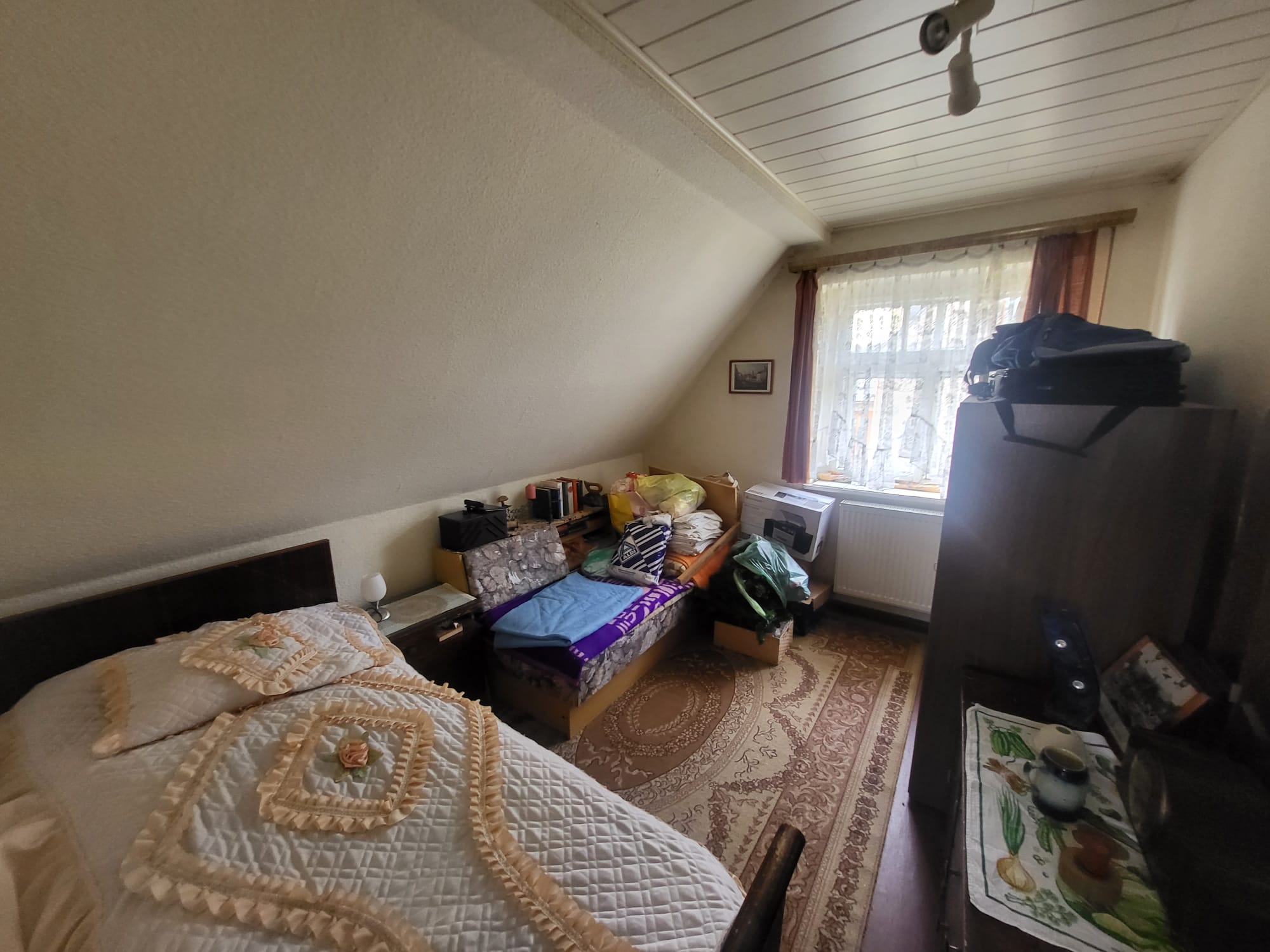 Das Haus wurde um ca. 1930 in massiver Bauweise errichtet und verfügt über 2 Wohngeschosse, den teilweise ausgebauten Dachspitz und einen Keller. Über eine kleine Treppe und den Windfang betritt man das Haus. Vom Flur aus gelangt man im Erdgeschoss in ein kleines Schlafzimmer, ein separates WC, die Küche und daran anschließend das Wohnzimmer. Über eine Steintreppe erreicht man das Dachgeschoss. Ein kleineres Zimmer mit Zugang zu einem größeren Zimmer könnte als Schlafzimmer mit Ankleidezimmer dienen. Ein weiteres kleines Zimmer könnte als Kinderzimmer genutzt werden. Auch auf dieser Etage gibt es ein separates WC. Vom Flur im OG besteht auch der Zugang zum Dachboden, welcher zum Lagern genutzt werden kann. Auch hier gibt es noch ein kleines Zimmer, welches als Hobbyraum dienen könnte. Das Haus ist voll unterkellert. Hier befindet sich auch das Badezimmer, welches man bei Sanierung ins Erdgeschoss verlegen könnte. Weiter ist hier die ca. 2000 neu installierte Ölheizung untergebracht. Diese versorgt das Haus mit Wärme und Warmwasser. Die Öltanks sind nebenan in einem Raum untergebraucht. Ein weiterer Raum diente als Werkstatt. Vom Keller aus besteht ein Zugang zum Garten. Aktuell ist das Haus noch bewohnt, wird jedoch mit Verkauf frei gezogen.