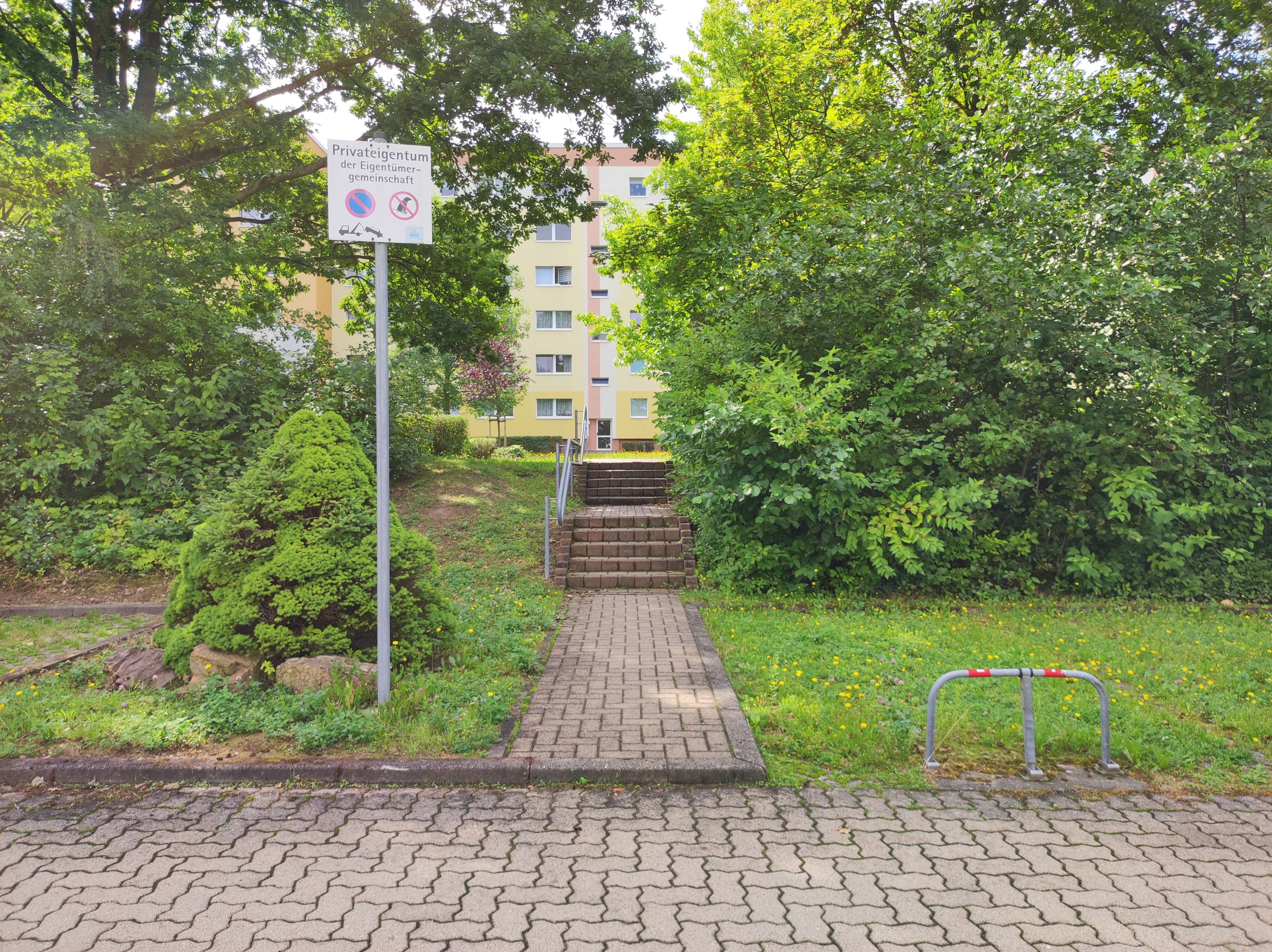 Die Wohnung befindet sich im Chemnitzer Stadtteil Markersdorf in einer Plattenbausiedlung. Zentral und dennoch von viel Grün umgeben, kann man hier entspannt leben. Man benötigt nicht zwingend einen PKW. Einkaufsmöglichkeiten befinden sich quasi vor der Haustür, ebenso Kindergärten, Schulen, Ärzte usw. Der öffentliche Nahverkehr ist nur wenige Minuten fußläufig entfernt, sodass auch das Stadtzentrum mit all seinen Angeboten schnell erreichbar ist. Mehrere Parks in der nähren Umgebung laden zu erholsamen Spaziergängen ein.