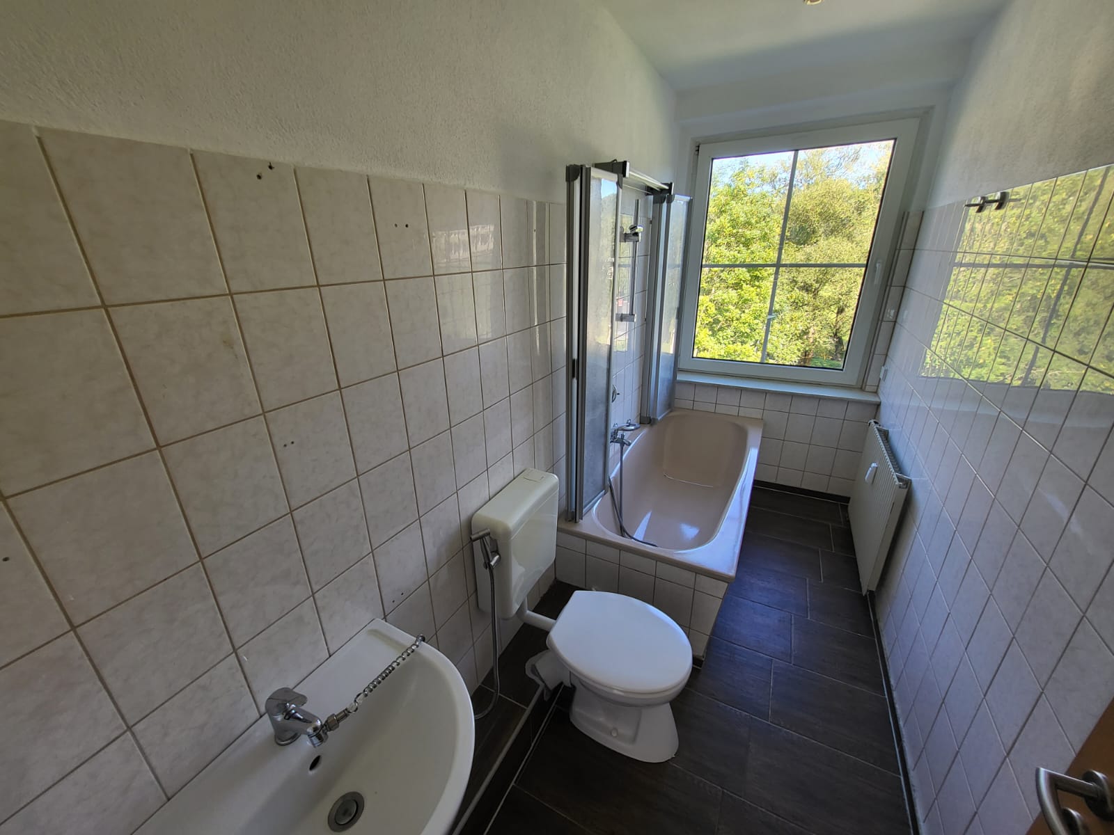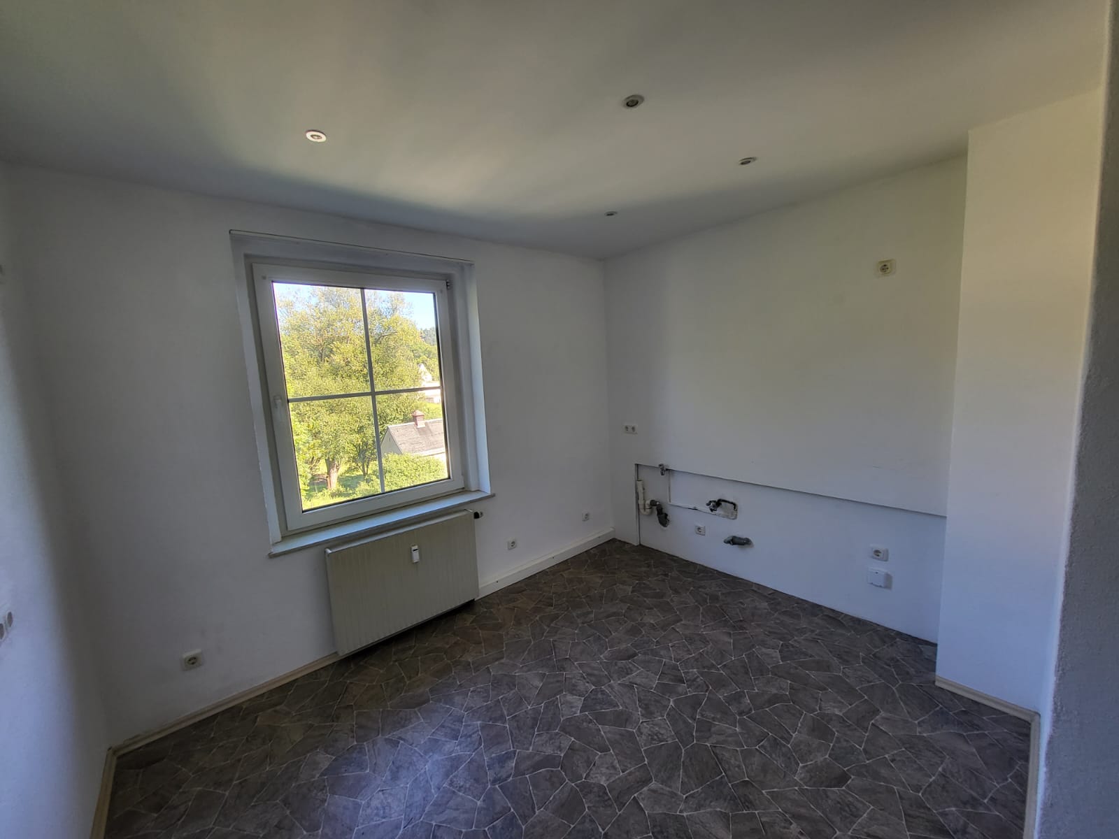 Zur Vermietung steht eine helle, gut geschnittene 3 Raum Wohnung in ruhiger Siedlungslage von Wiesenbad. Vom Flur aus befinden sich linker Hand die Küche, ein Abstellraum und das Bad. Geradeaus liegt das große Wohnzimmer, von welchem man Zugang zum Schlafzimmer hat und rechter Hand das Kinderzimmer. Das Tageslicht Bad wurde neutral gefliest und verfügt über Badewanne, Waschtisch und WC. Die Böden sind mit pflegeleichtem Laminat und Teppich belegt. Abgehängte Decken, Regalelemente und Mauervorsprünge geben dieser Wohnung etwas Einzigartiges. Dieser WE ist ein Kellerraum zugeordnet.