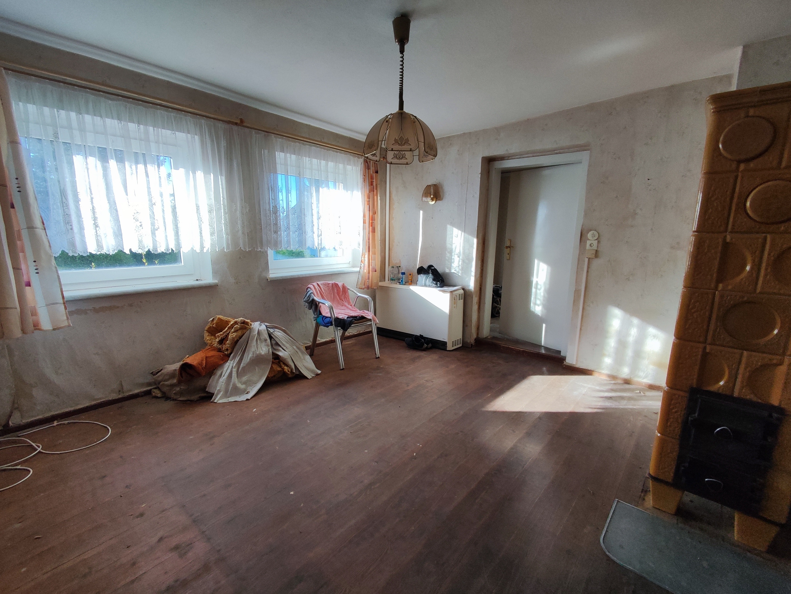 Zum Verkauf steht ein um ca. 1850 im Fachwerkstil erbautes Einfamilienhaus in Grüna. Auf 2 Etagen und dem ausgebauten Dachgeschoss stehen ihnen ca. 100 m² Wohnfläche und ein 950m² großes Grundstück zur Verfügung. Man kann das Haus direkt über die Vorderfront oder über den Hintereingang betreten. Betritt man das Haus vom Vordereingang, so befindet man sich zunächst im Hausflur/Treppenhaus. Auf der rechten Seite befindet sich ein großes Wohnzimmer mit Kachelofen und direkt anschließend ein kleines individuell nutzbares Zimmer. Auf der linken Seite befindet sich eine Küche mit erneuertem Dielenboden, das Bad mit Dusche, Waschtisch, WC und Waschmaschinenanschluss sowie ein kleiner Abstellraum und der Kellerzugang. Über eine Holztreppe gelangt man ins 1. Obergeschoss. Hier befindet sich ein weiterer kleiner Raum mit Wasseranschluss und daran anschließend ein großes Schlafzimmer. Auch hier grenzt wieder ein kleiner Raum an, welcher verschiedene Nutzungsmöglichkeiten bietet. Auf der gegenüberliegenden Seite befindet sich noch ein großes Schlafzimmer und ein weiteres kleines Zimmer. Über eine weitere Holztreppe erreicht man das ausgebaute Dachgeschoss, in welchem sich ein großer und kleiner Raum befinden. Diese können sie je nach Bedarf nutzen. Das Haus ist mit einem kleinen Gewölbekeller teilweise unterkellert. Auf der Rückseite des Hauses befindet sich ein kleiner Anbau mit 3 kleinen Abteilen, welche zum Abstellen für Gartenmöbel und Gartengeräte dienen kann.