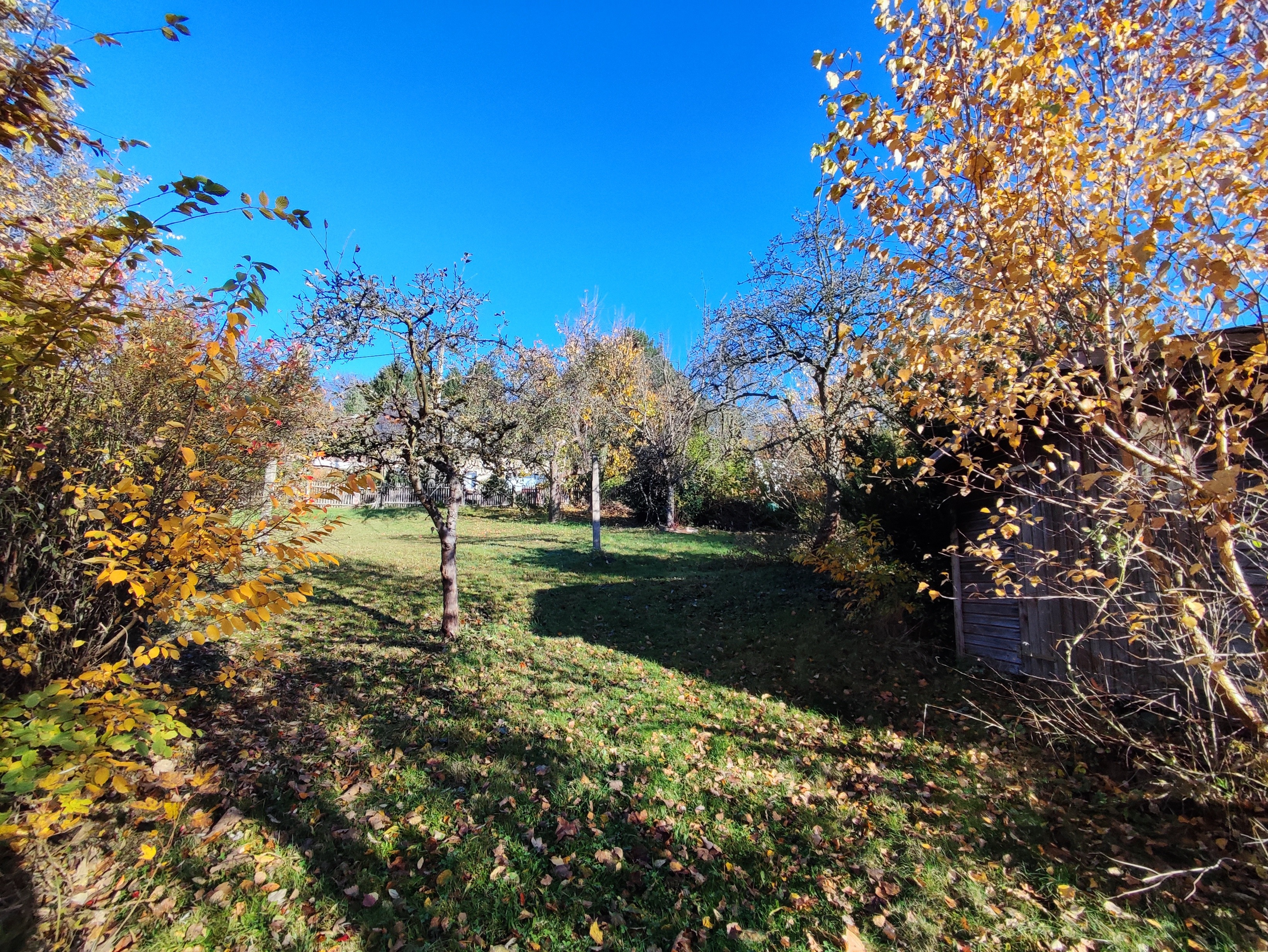 Zum Haus gehört ein großes, leicht abschüssiges Grundstück, welches mit Obstbäumen, Sträuchern, Wiese und einem kleinen Gartenhaus viel Spielraum für Gestaltung und Entspannung bietet. Für die Kinder gibt es ausreichend Platz zum Spielen und Toben und auch für Schaukel, Sandkasten, Pool usw. findet sich ein Eckchen. Legen sie sich eine schöne Terrasse an, auf welcher sie mit der Familie und Freunden gemütliche Grillabende verbringen können. An der Vorderfront wird das Grundstück durch eine Hecke begrenzt. Hier gibt es auch eine Zufahrt zum abstellen eines PKWs. Man könnte das Grundstück dort auch öffnen und eine Garage oder ein Carport errichten.