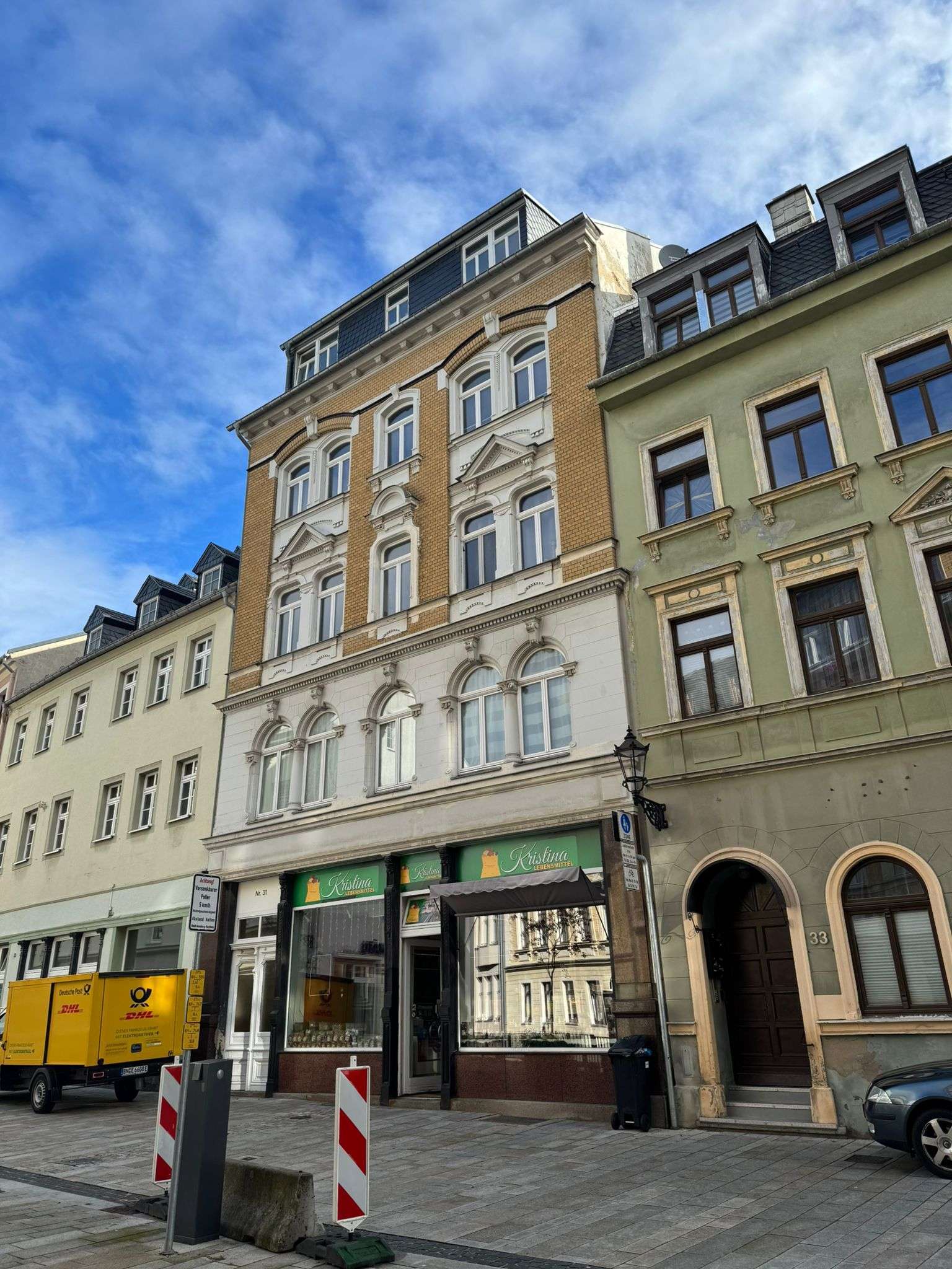 Im Erdgeschoss befindet sich derzeit ein Lebensmittelgeschäft.