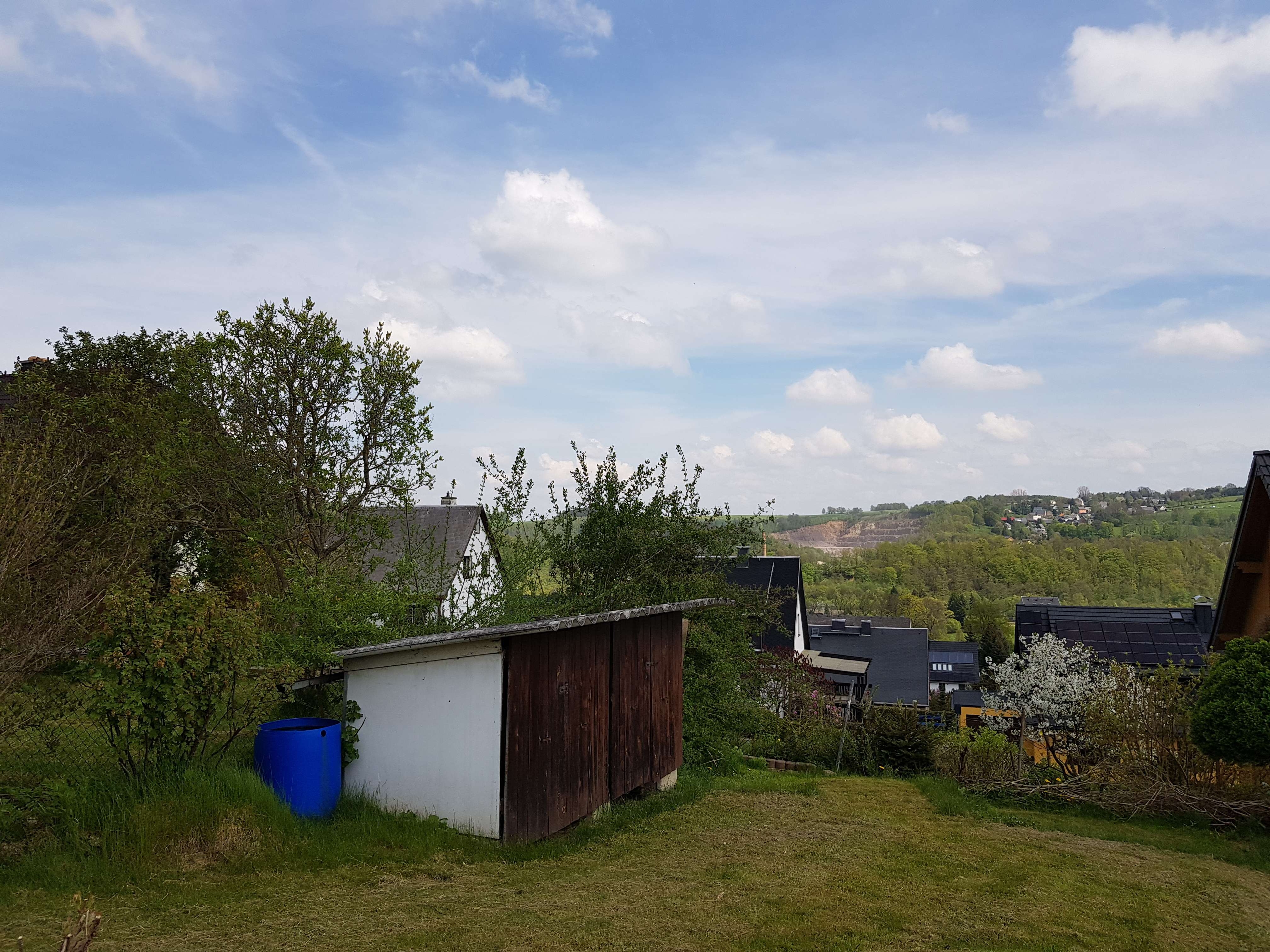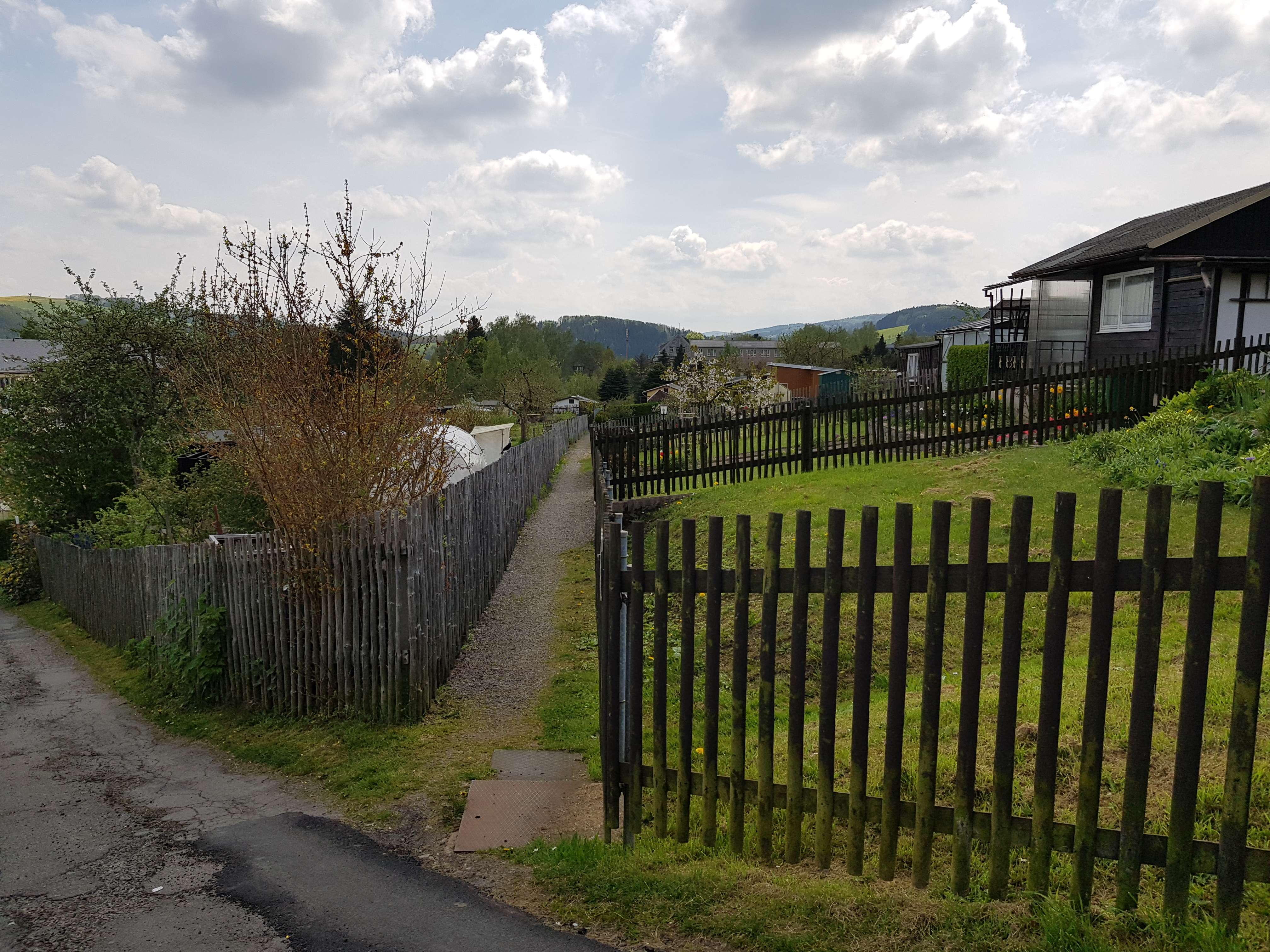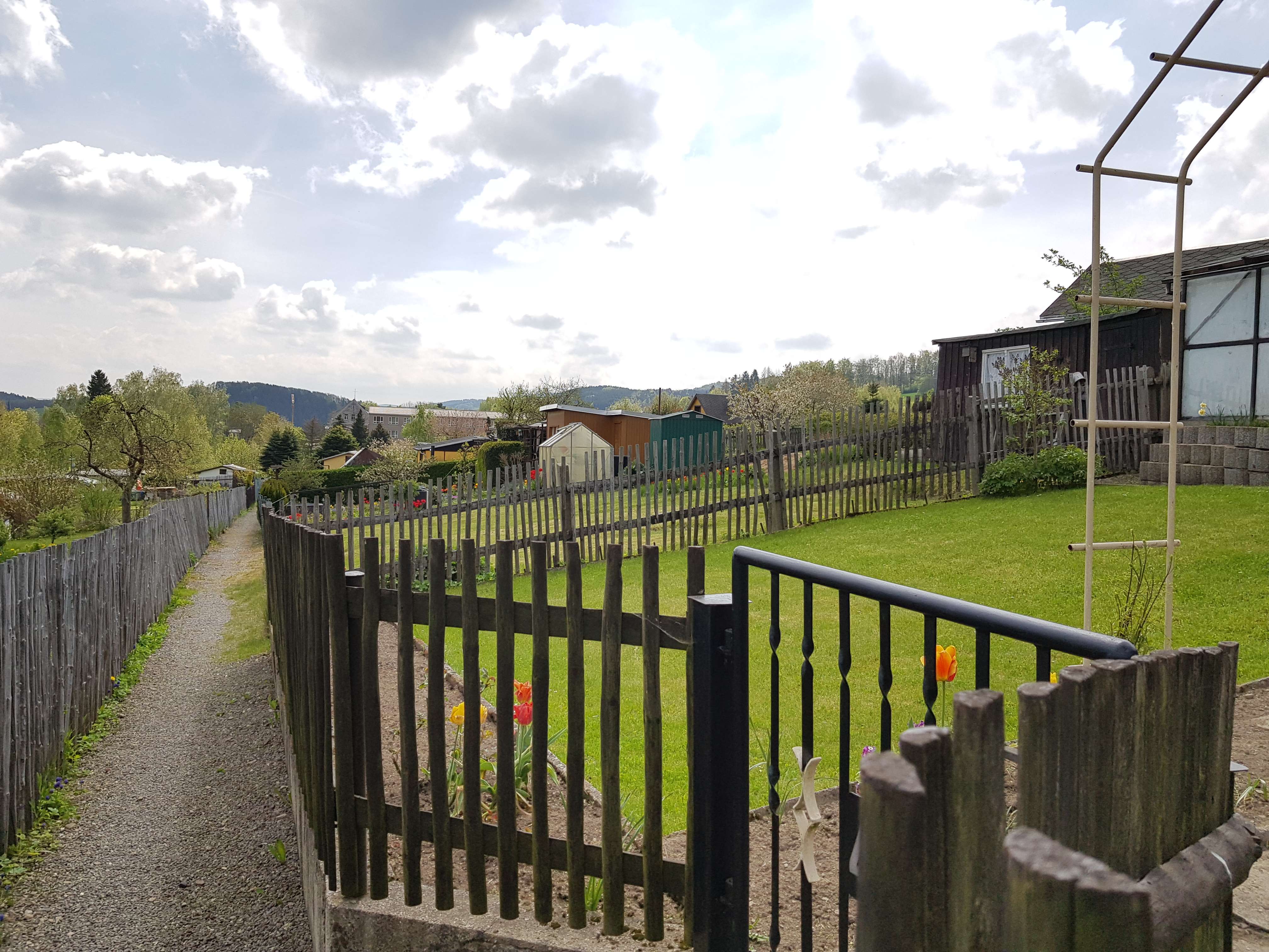 Das Grundstück liegt am Rande von Pockau und ist sehr sonnig, leicht abschüssig und verfügt über einen fantastischen Ausblick über das Tal. Die Gärten sind teilweise sehr gepflegt.