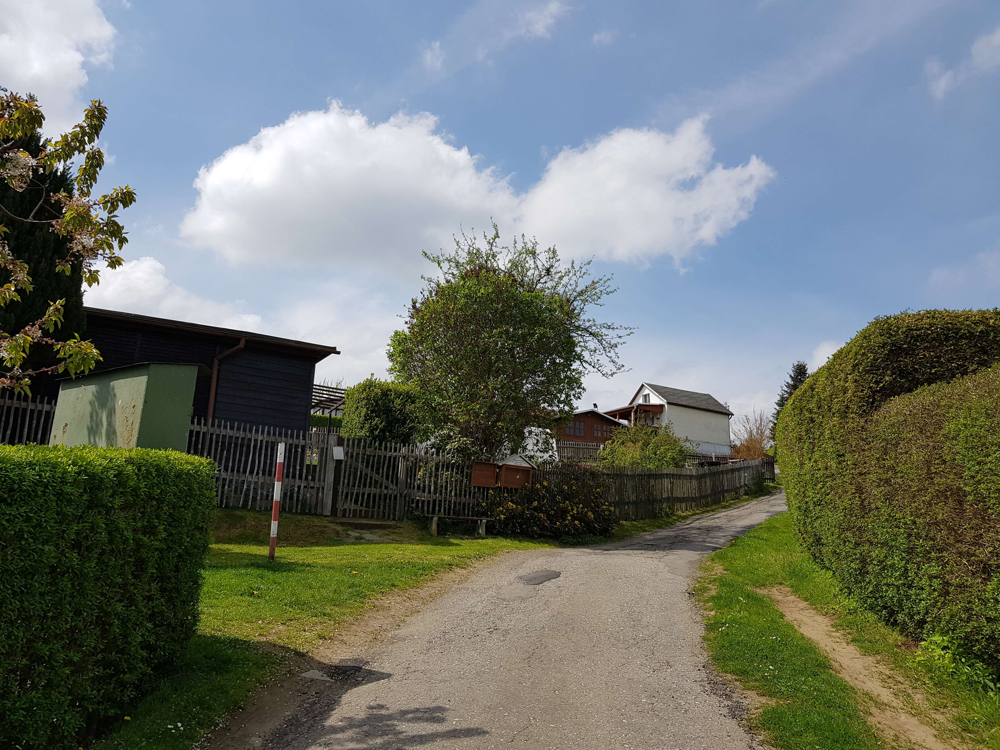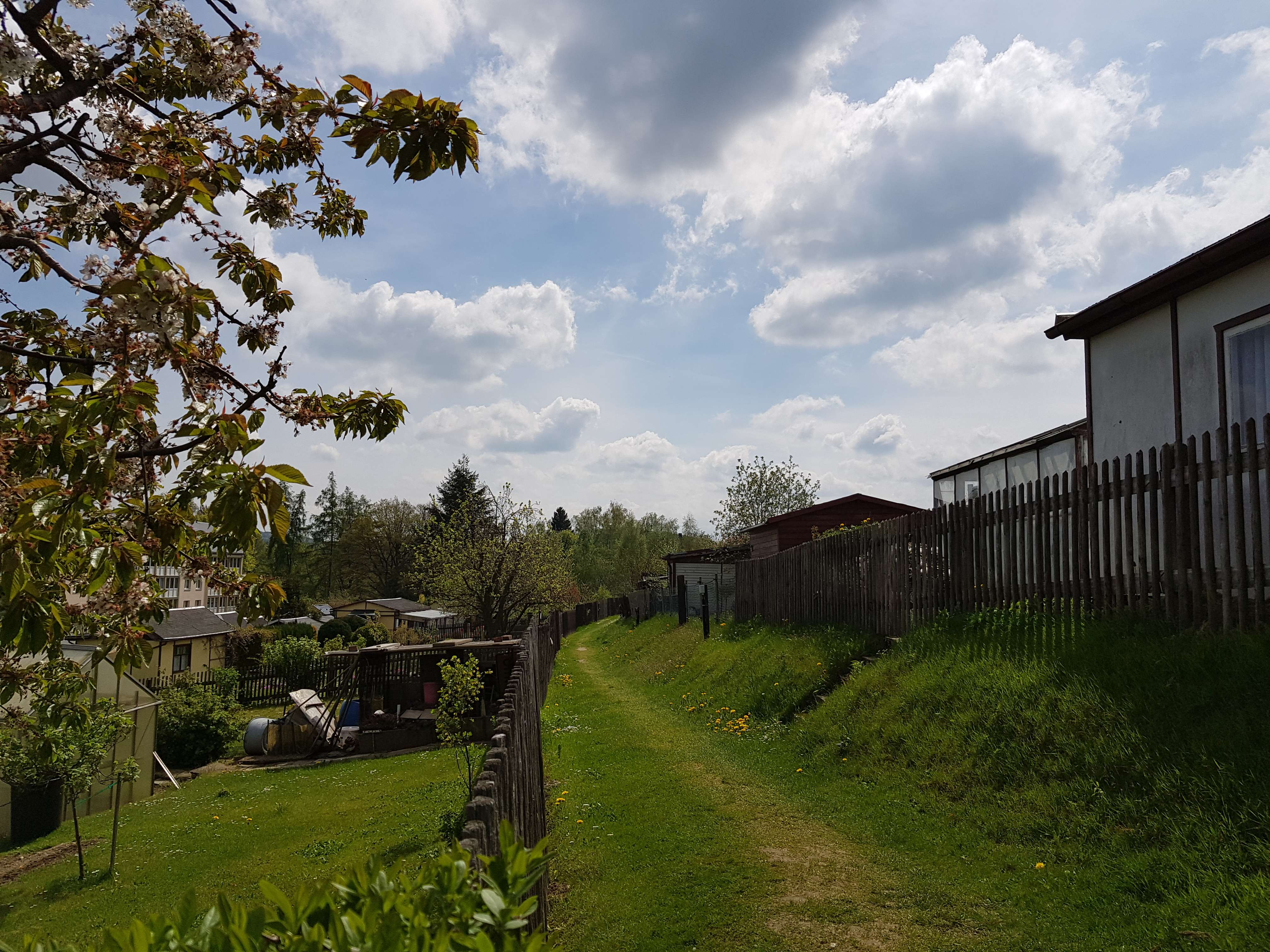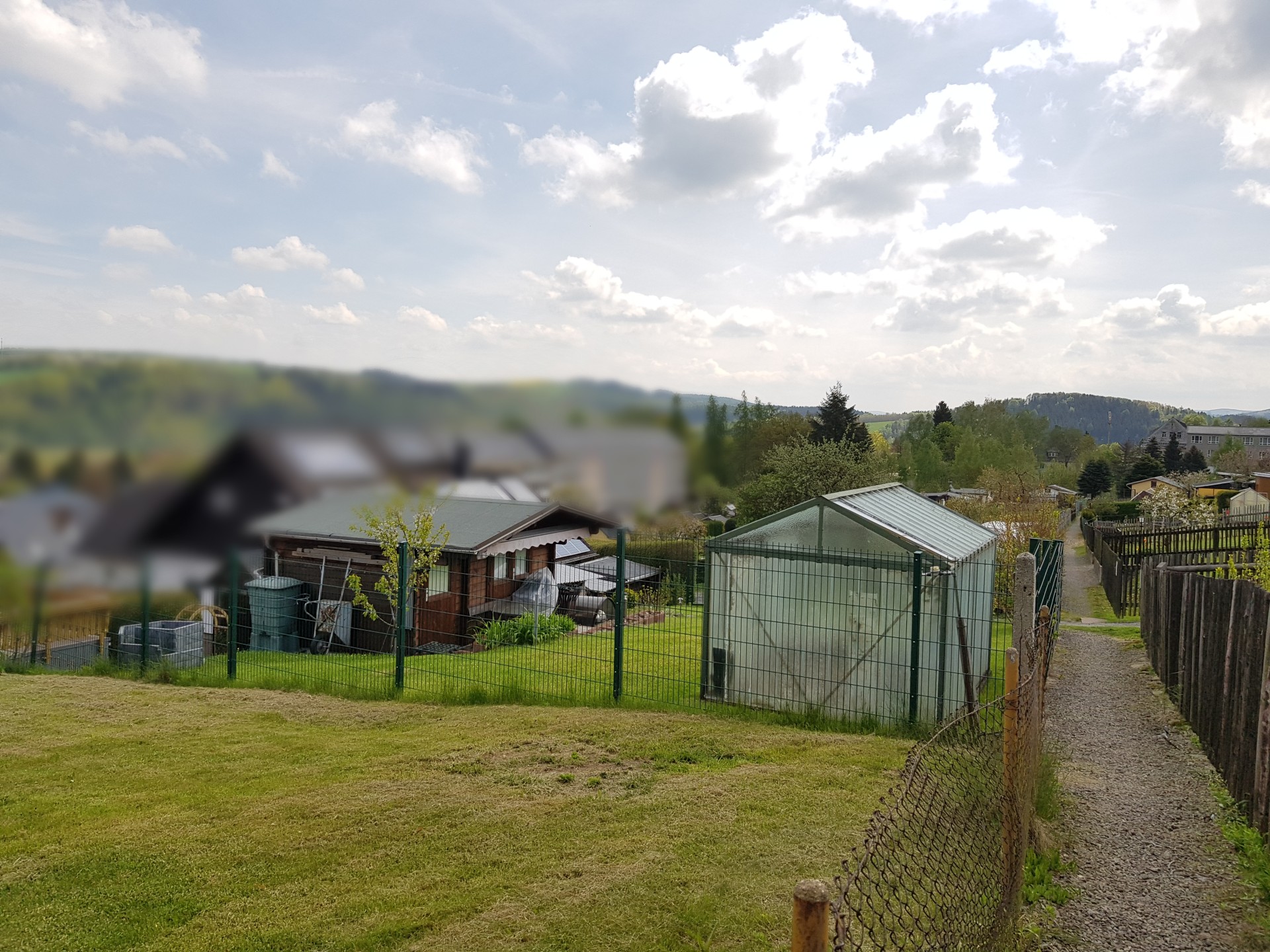 Das Grundstück liegt am Rande von Pockau und ist sehr sonnig, leicht abschüssig und verfügt über einen fantastischen Ausblick über das Tal. Die Gärten sind teilweise sehr gepflegt.