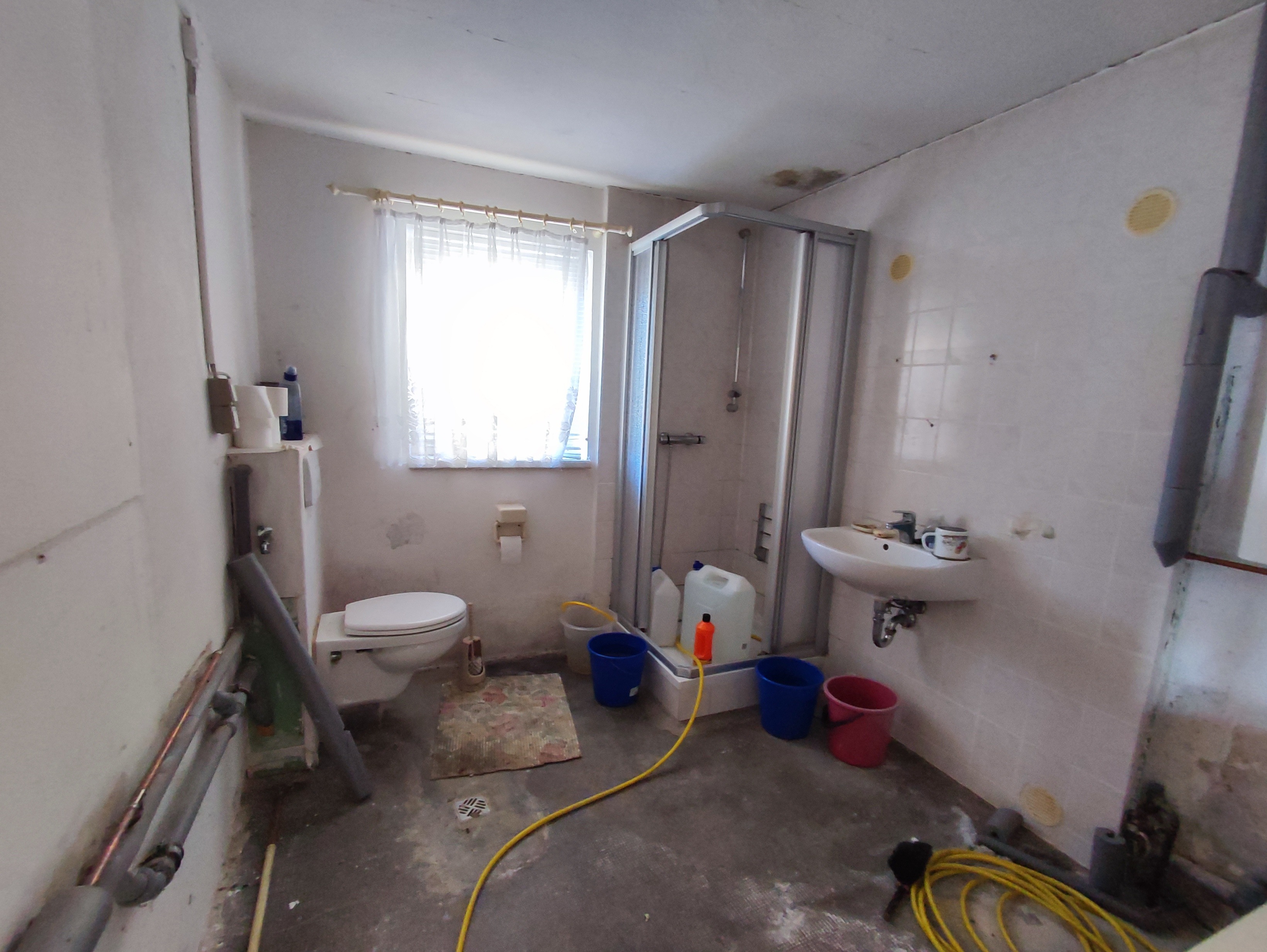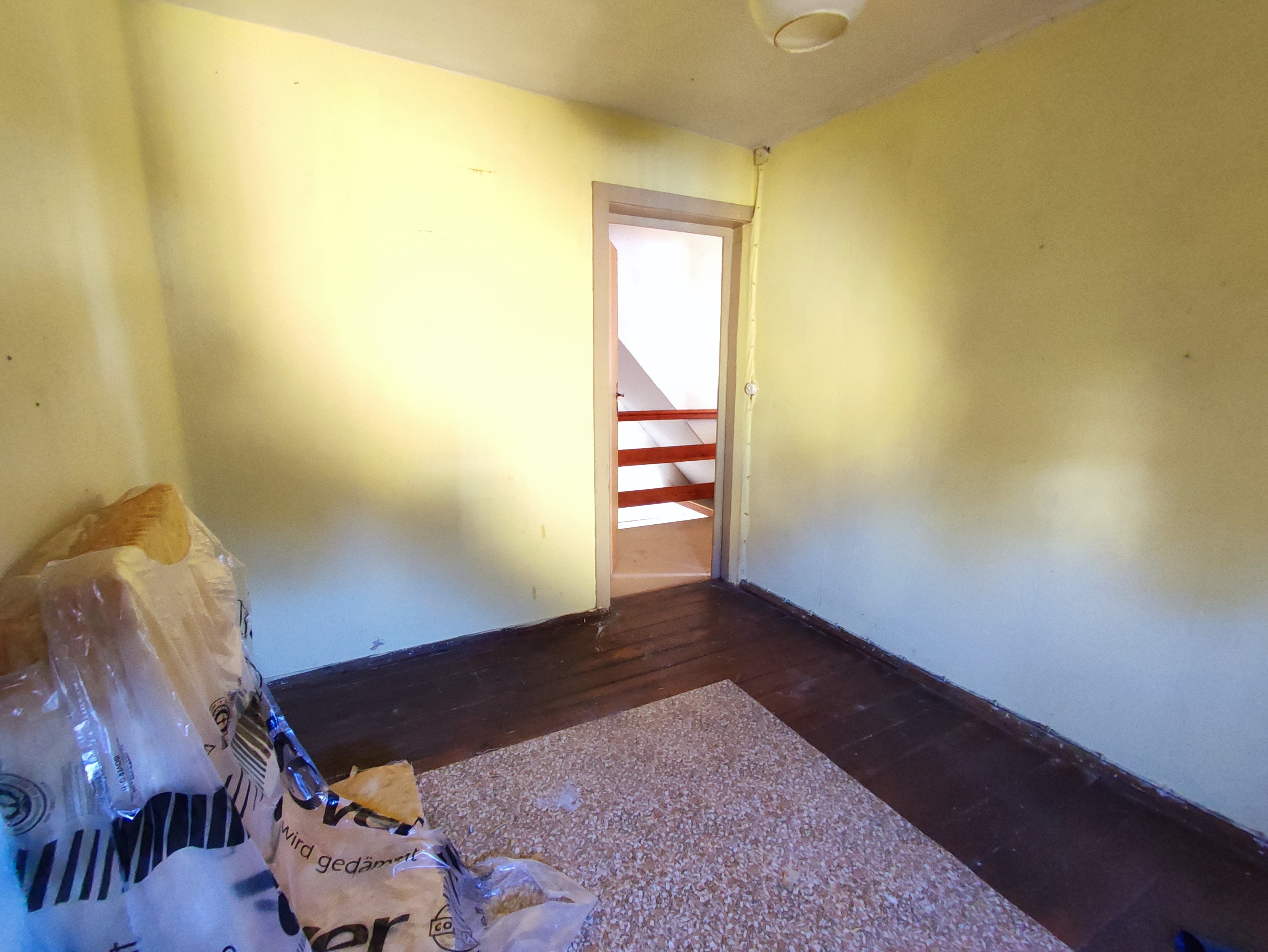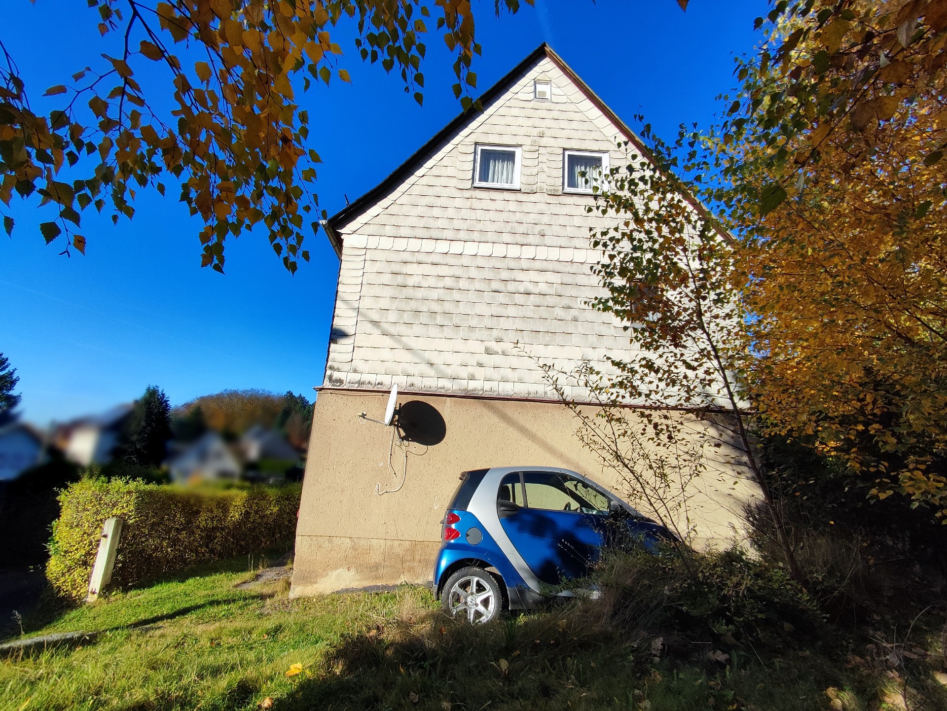 Dieses Haus ist sehr stark sanierungsbedürftig. Natürlich könnte man das alte Haus abreißen und einen modernen Neubau auf dem Grundstück errichten. Errichtet man ein neues Haus am anderen Ende des Grundstücks, so hätte man einen tollen Ausblick über den Ort.
