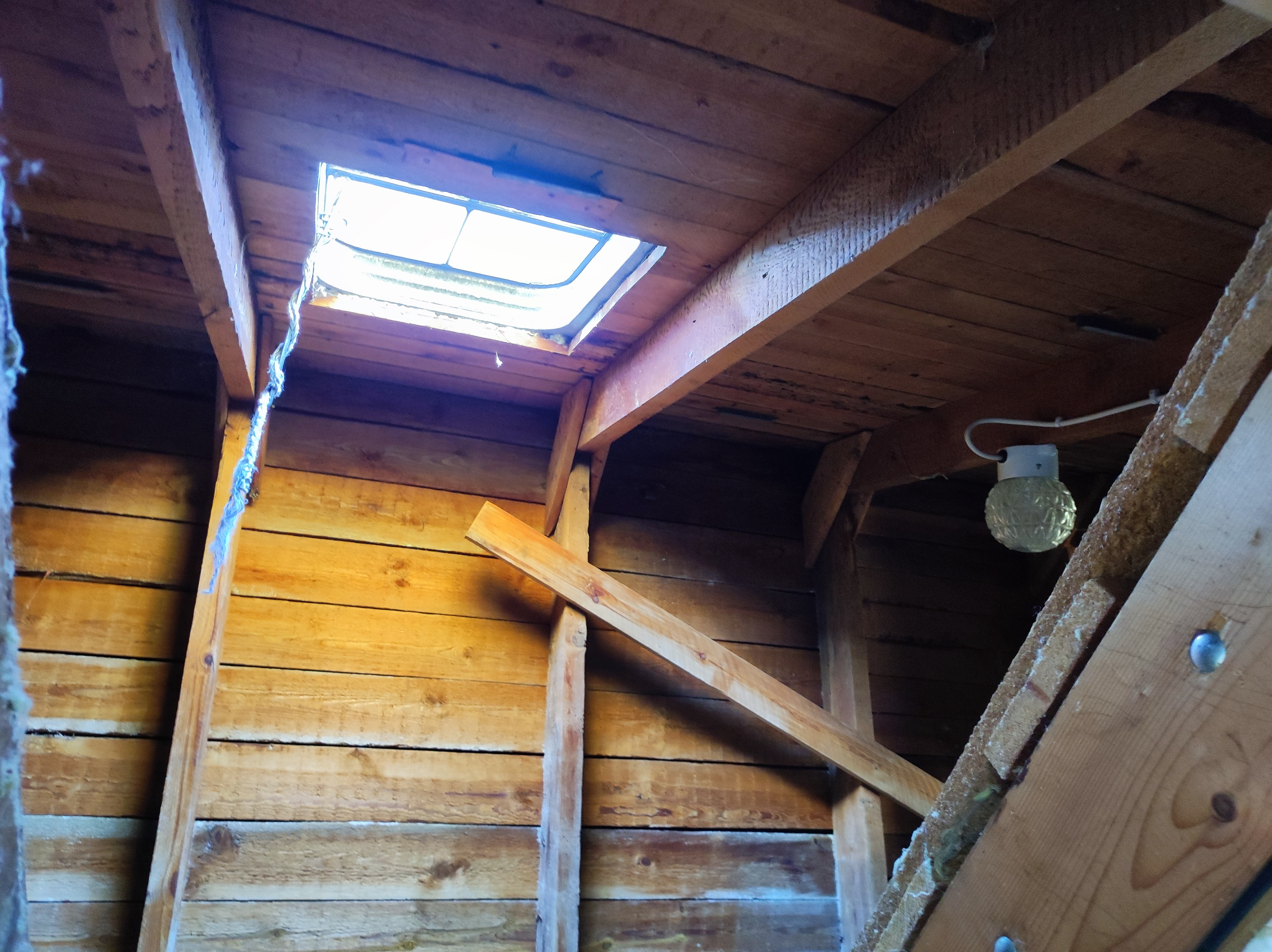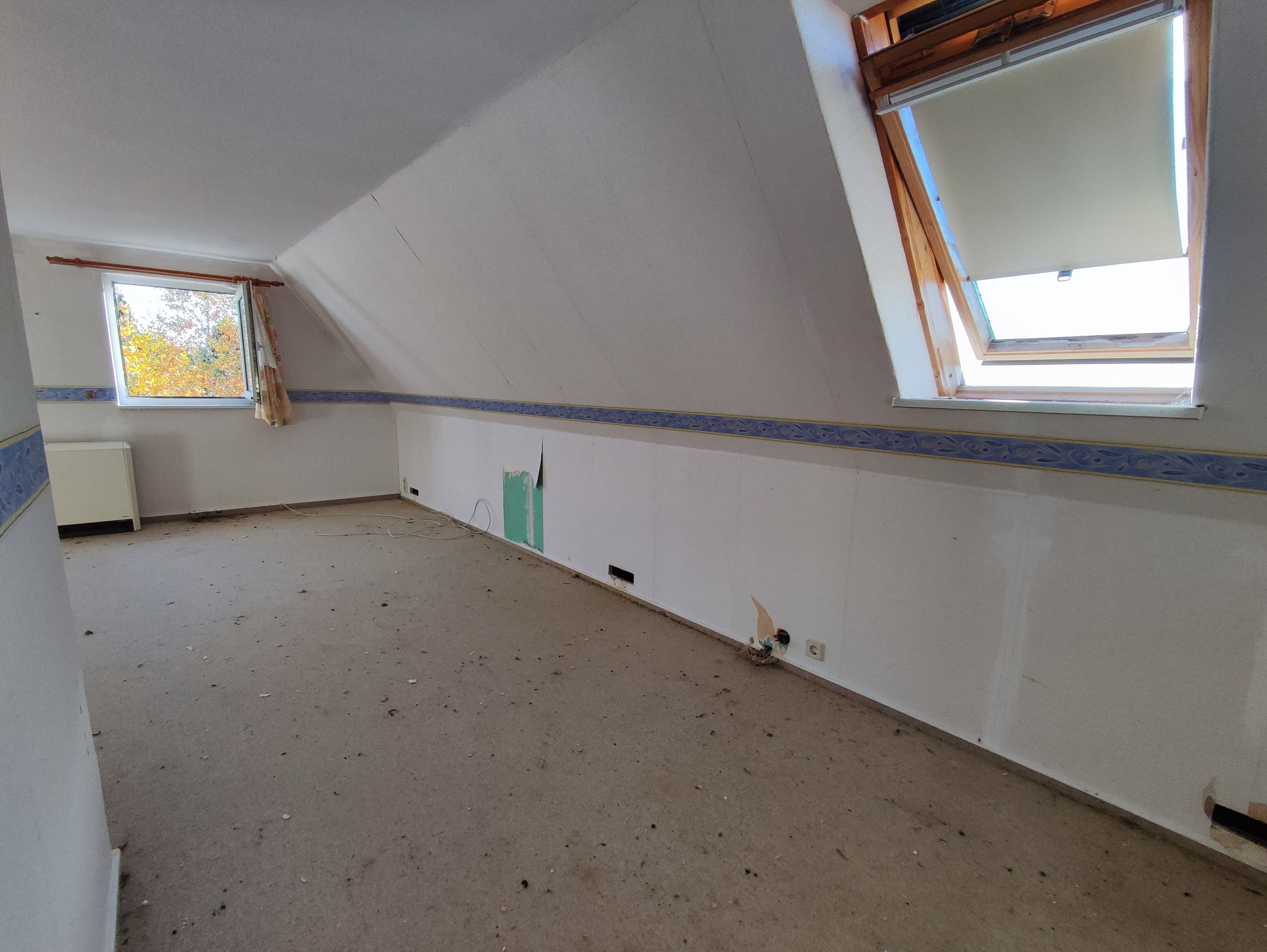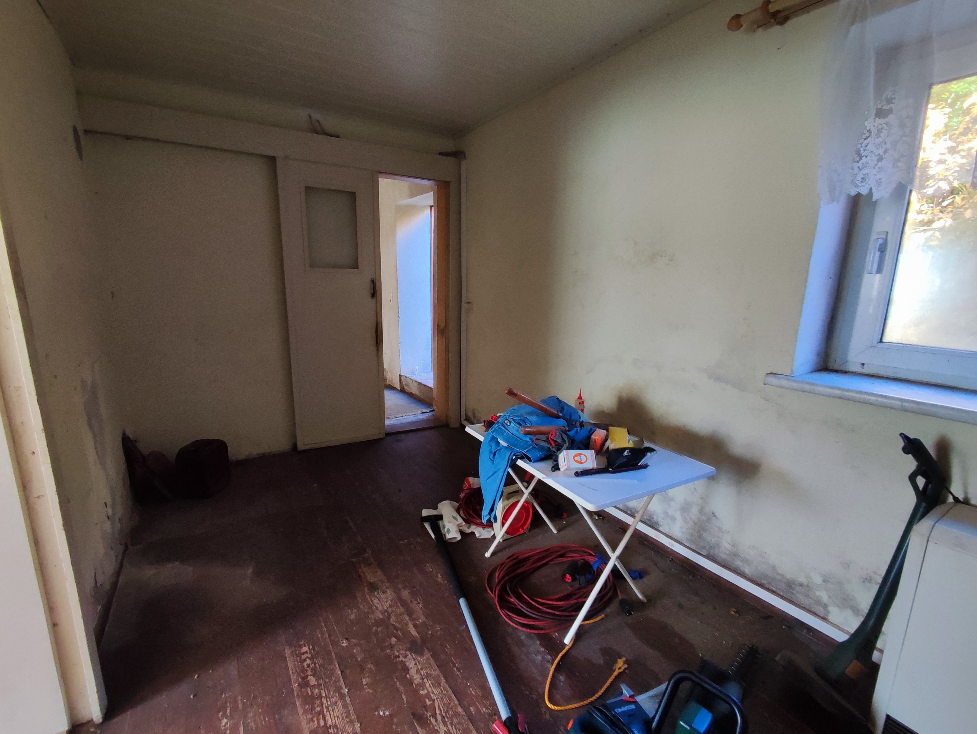 Dieses Haus ist sehr stark sanierungsbedürftig. Natürlich könnte man das alte Haus abreißen und einen modernen Neubau auf dem Grundstück errichten. Errichtet man ein neues Haus am anderen Ende des Grundstücks, so hätte man einen tollen Ausblick über den Ort.