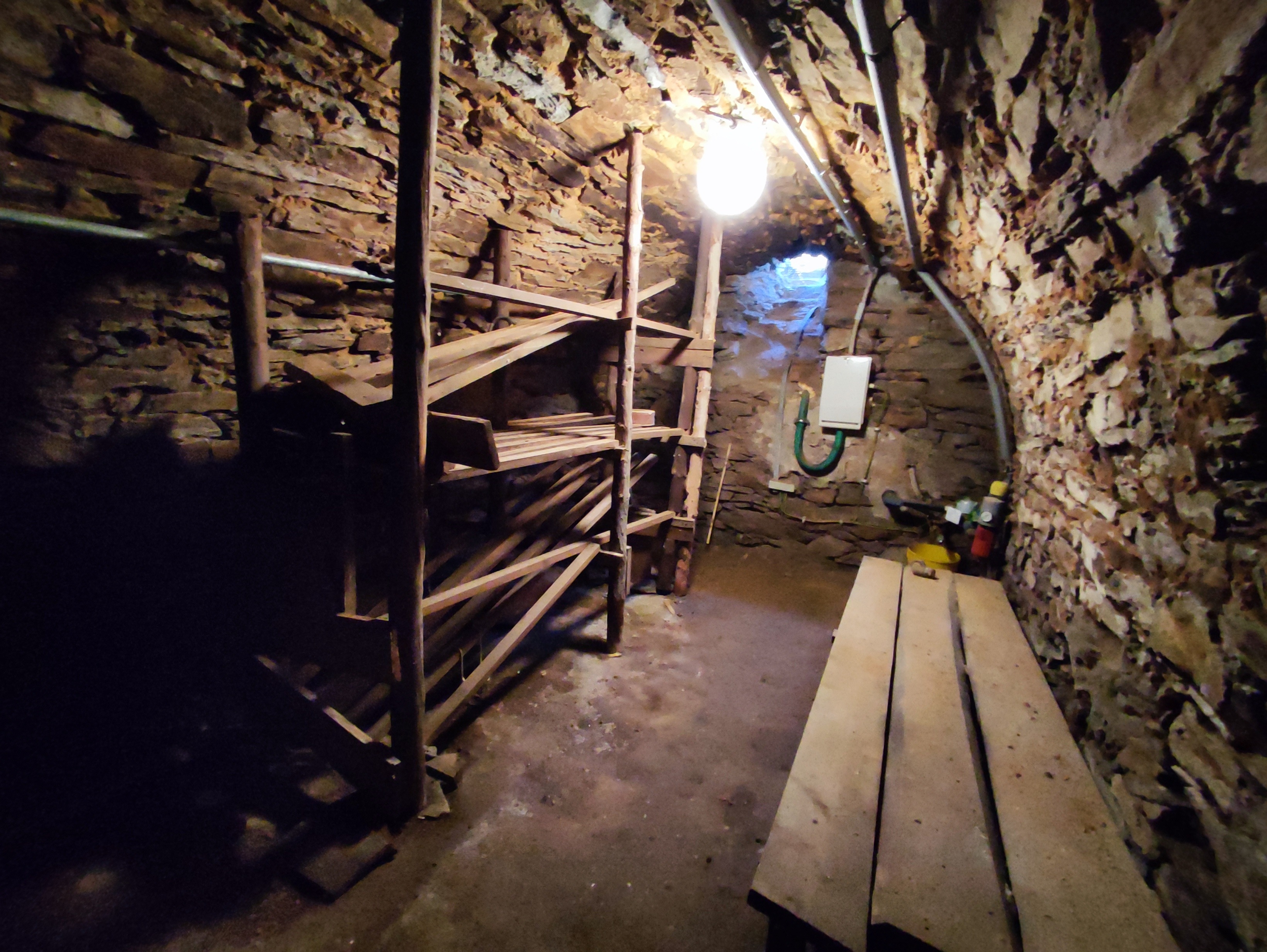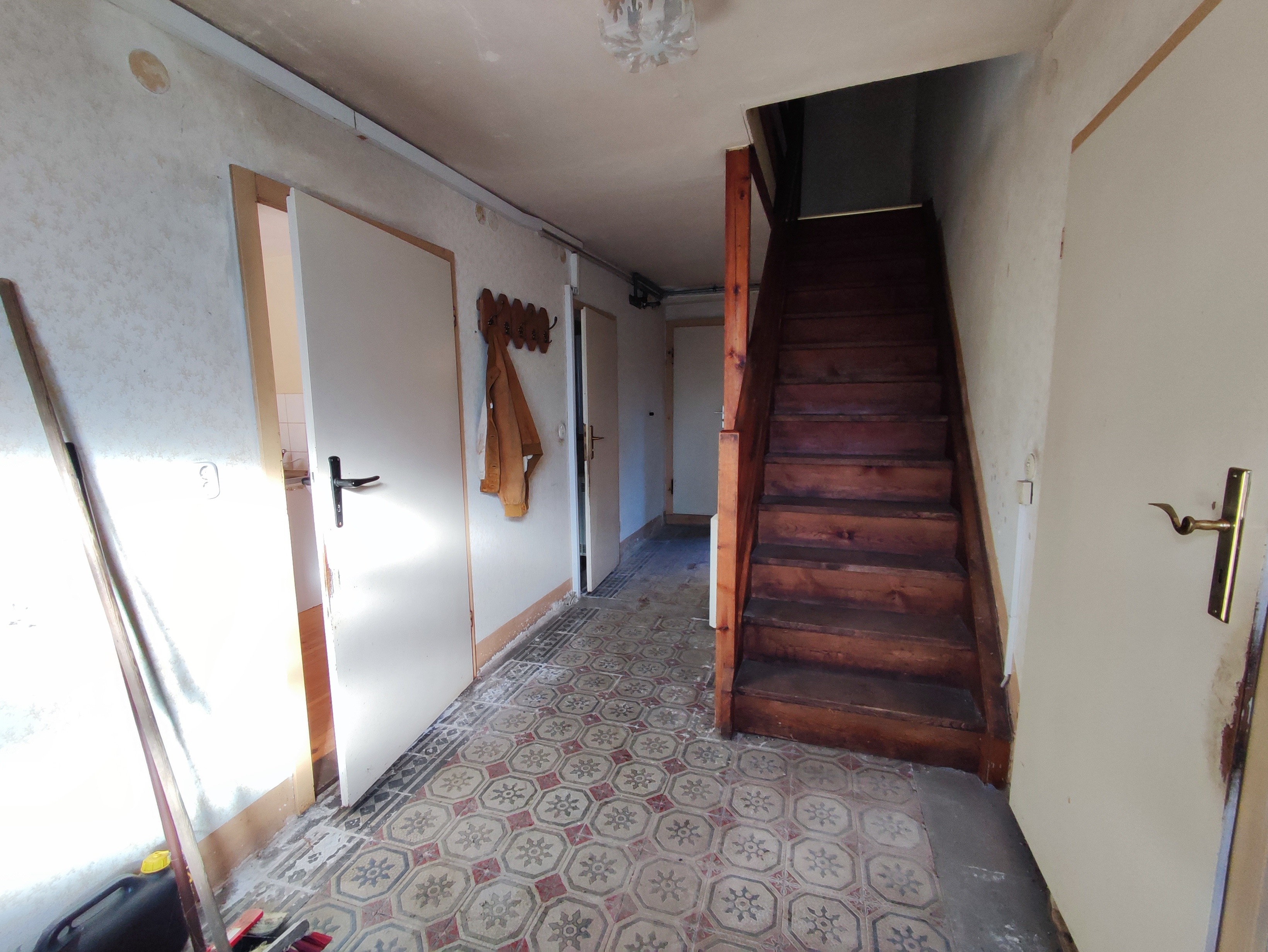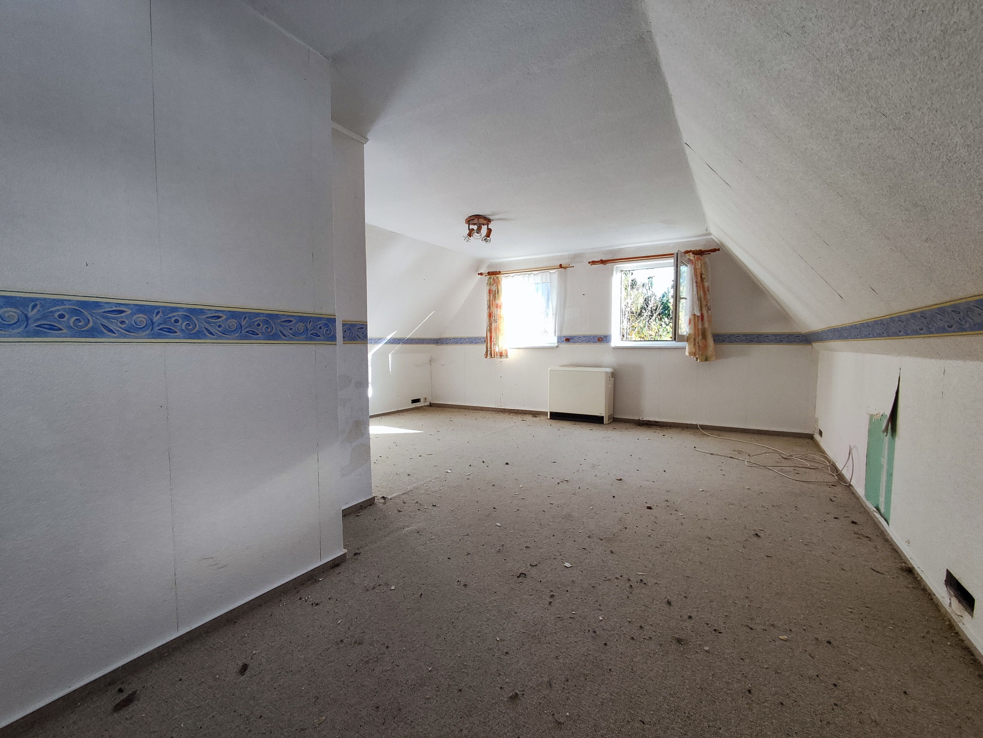 Das Grundstück ist weiter mit einem um ca. 1850 im Fachwerkstil erbautes Einfamilienhaus bebaut. Auf 2 Etagen und dem ausgebauten Dachgeschoss stehen ihnen ca. 100 m² Wohnfläche zur Verfügung. Man kann das Haus direkt über die Vorderfront oder über den Hintereingang betreten. Betritt man das Haus vom Vordereingang, so befindet man sich zunächst im Hausflur/Treppenhaus. Auf der rechten Seite befindet sich ein großes Wohnzimmer mit Kachelofen und direkt anschließend ein kleines individuell nutzbares Zimmer. Auf der linken Seite befindet sich eine Küche mit erneuertem Dielenboden, das Bad mit Dusche, Waschtisch, WC und Waschmaschinenanschluss sowie ein kleiner Abstellraum und der Kellerzugang. Über eine Holztreppe gelangt man ins 1. Obergeschoss. Hier befindet sich ein weiterer kleiner Raum mit Wasseranschluss und daran anschließend ein großes Schlafzimmer. Auch hier grenzt wieder ein kleiner Raum an, welcher verschiedene Nutzungsmöglichkeiten bietet. Auf der gegenüberliegenden Seite befindet sich noch ein großes Schlafzimmer und ein weiteres kleines Zimmer. Über eine weitere Holztreppe erreicht man das ausgebaute Dachgeschoss, in welchem sich ein großer und kleiner Raum befinden. Diese können sie je nach Bedarf nutzen. Das Haus ist mit einem kleinen Gewölbekeller teilweise unterkellert. Auf der Rückseite des Hauses befindet sich ein kleiner Anbau mit 3 kleinen Abteilen, welche zum Abstellen für Gartenmöbel und Gartengeräte dienen kann.