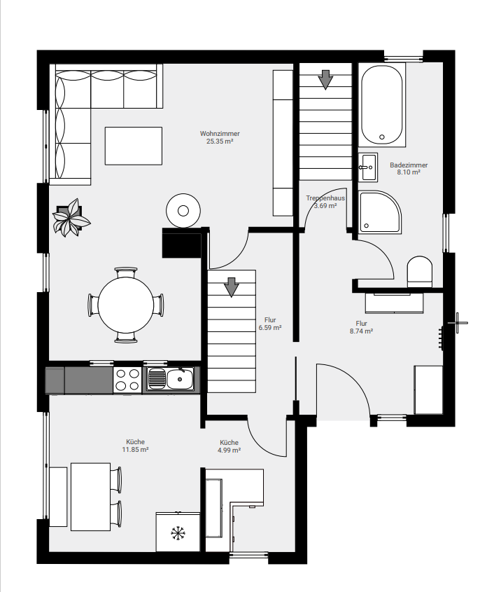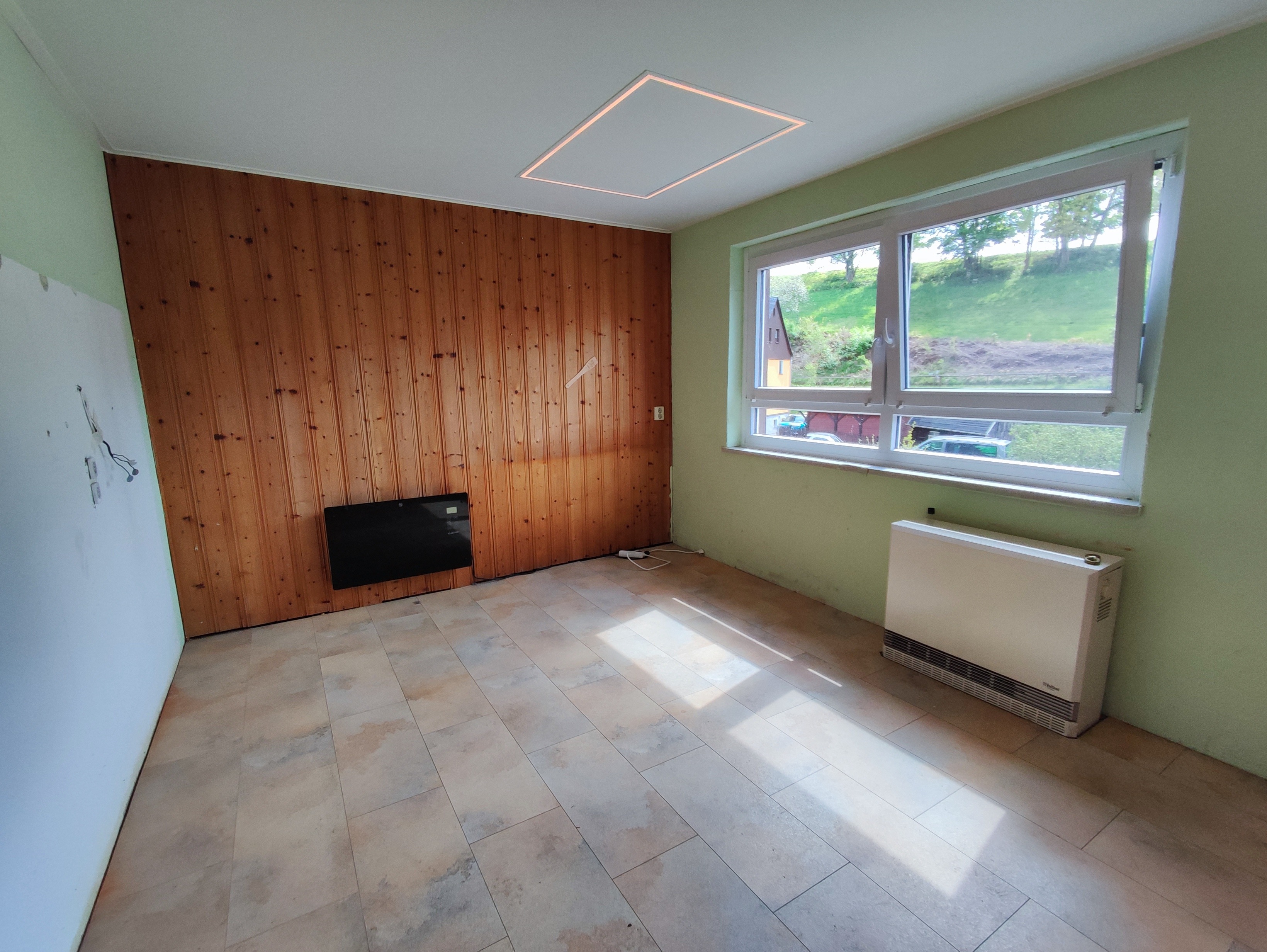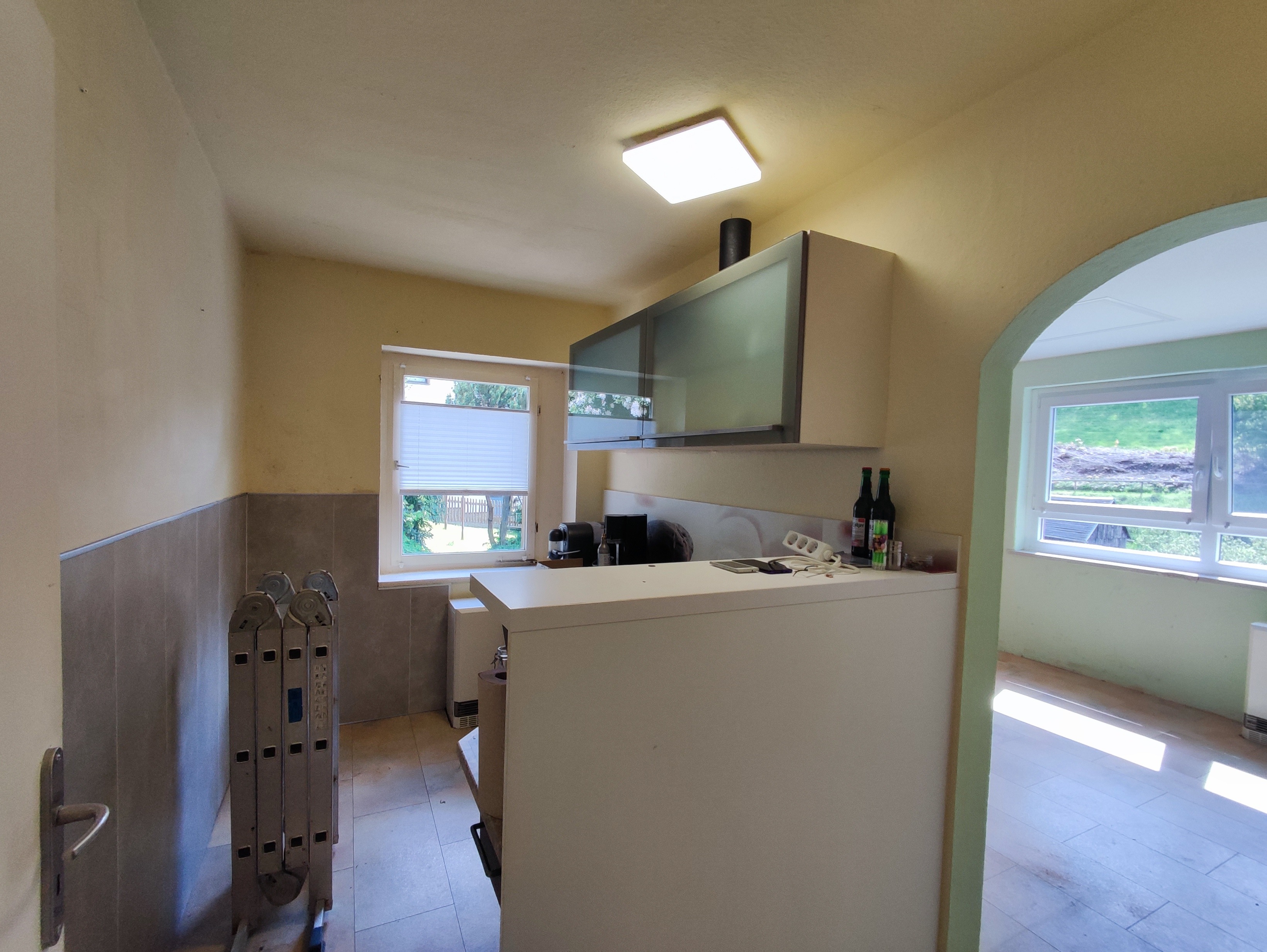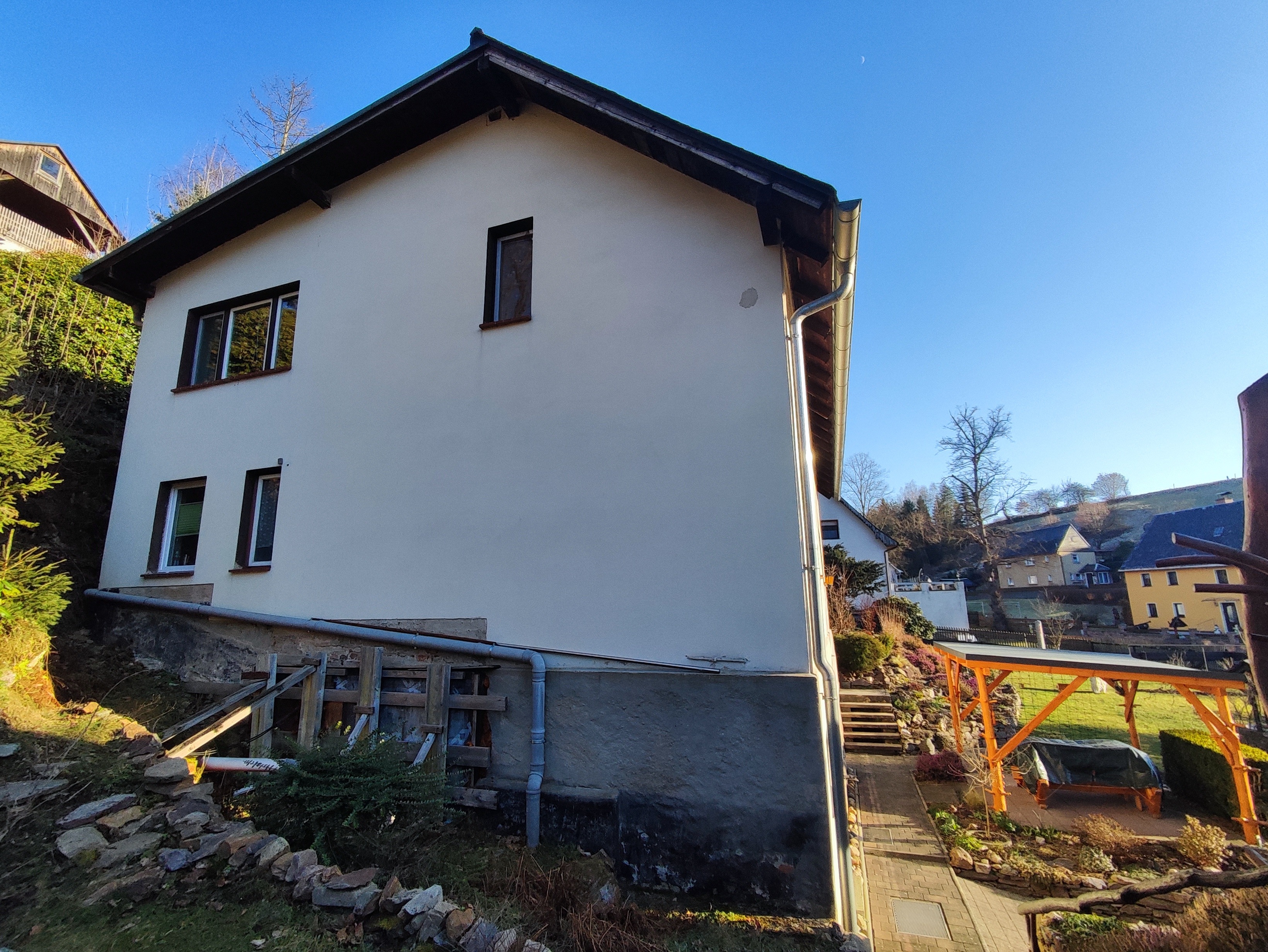 Das Haus befindet sich grundsätzlich in einem guten Zustand, wobei es dennoch einiger weiterer Sanierungen bedarf. Zum Beispiel sind die Treppenstufen zum Haus sehr marode, wobei der Ersatz bereits vorhanden ist und nur noch ausgetauscht werden muss. Auch sind an der Fassade einige Handgriffe erforderlich, um wieder nach außen zu glänzen. Eine Erneuerung der Stromleitungen und der Austausch der Fenster im Obergeschoss wären sinnvoll. Auch der Einbau einer modernen Heizungsanlage ist erforderlich. Dazu kann die vorhandenen Solaranlage eventuell mit einbezogen werden.