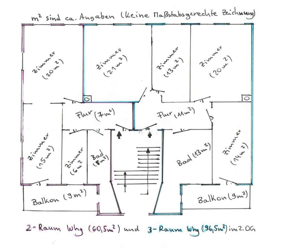 verfügt über 7 WE mit insgesamt ca. 565 m² Wohnfläche auf 3