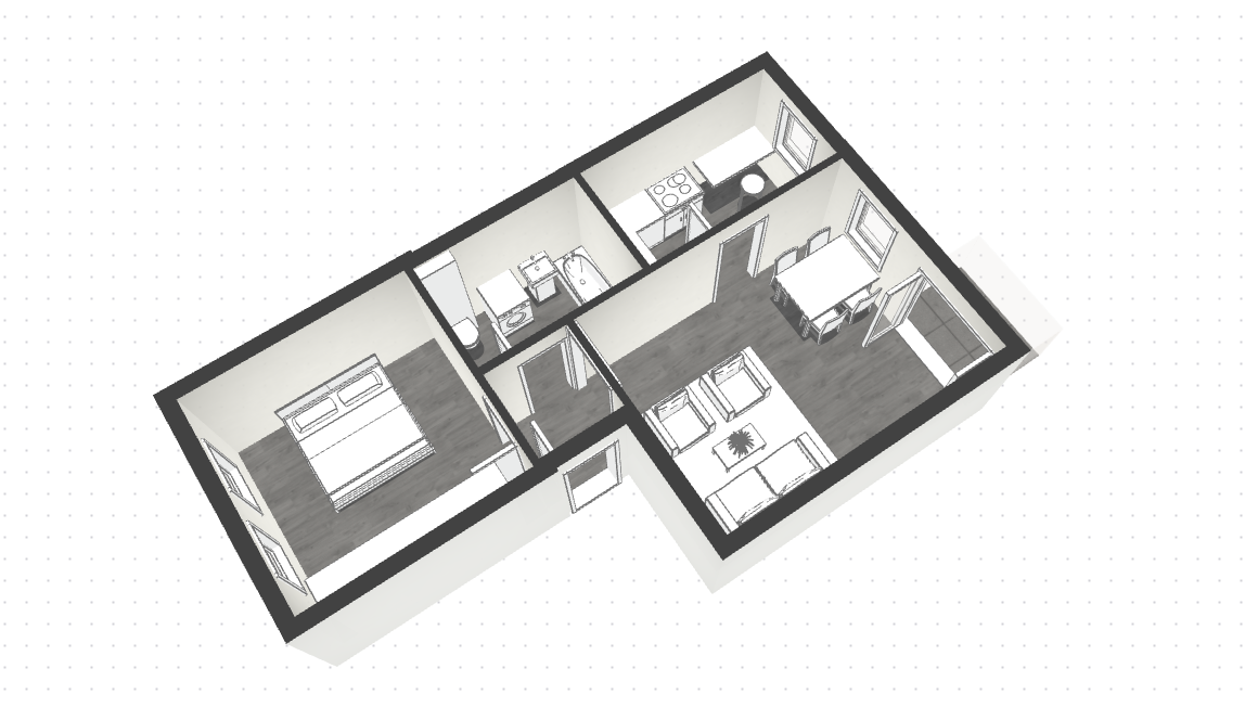 2.OG – 2-Raum, 45m², KM 230€+20€ Stellplatz, Hausgeld 248,00€