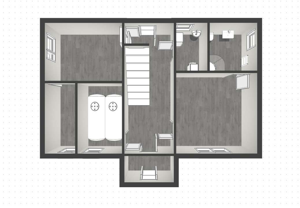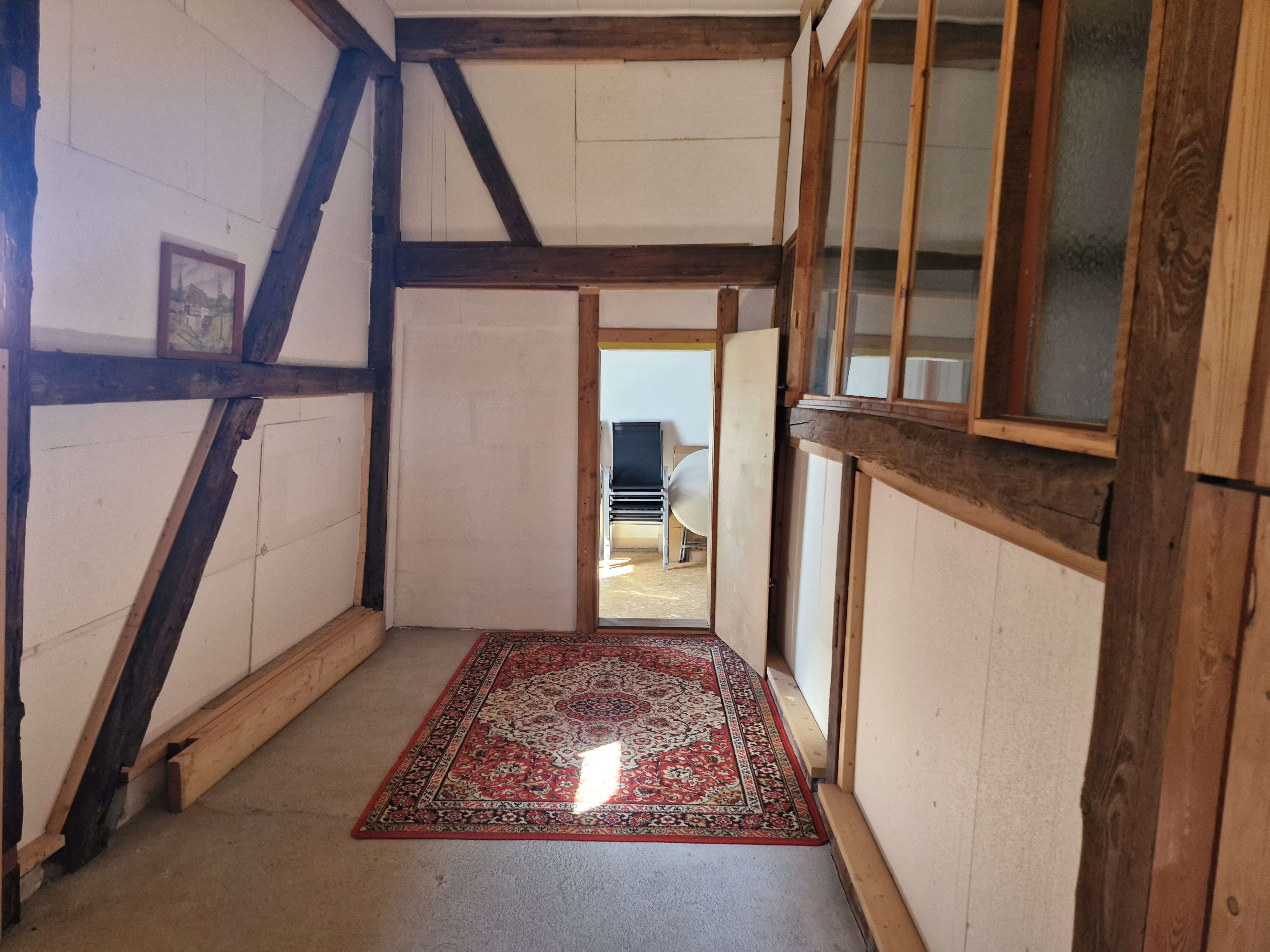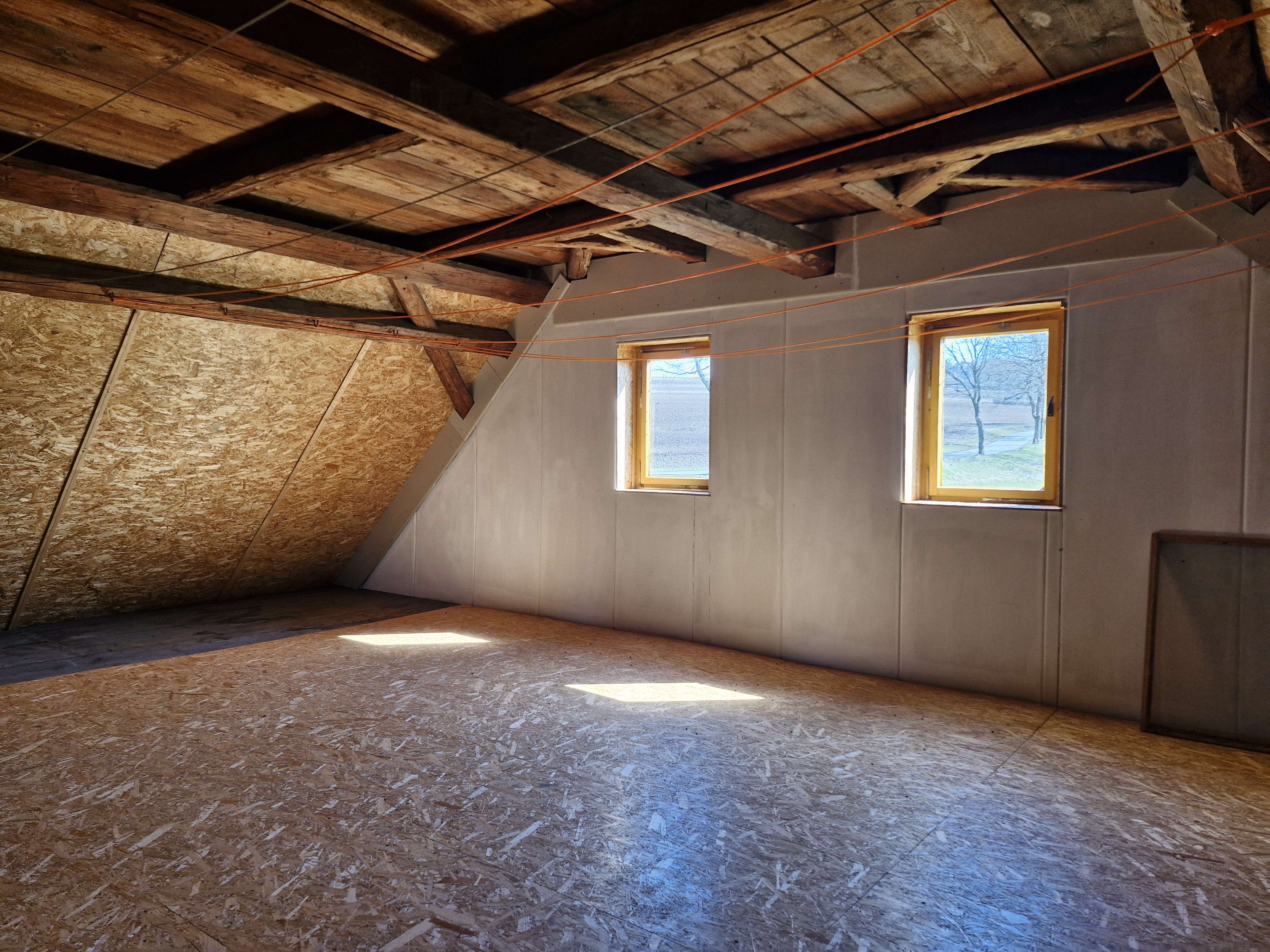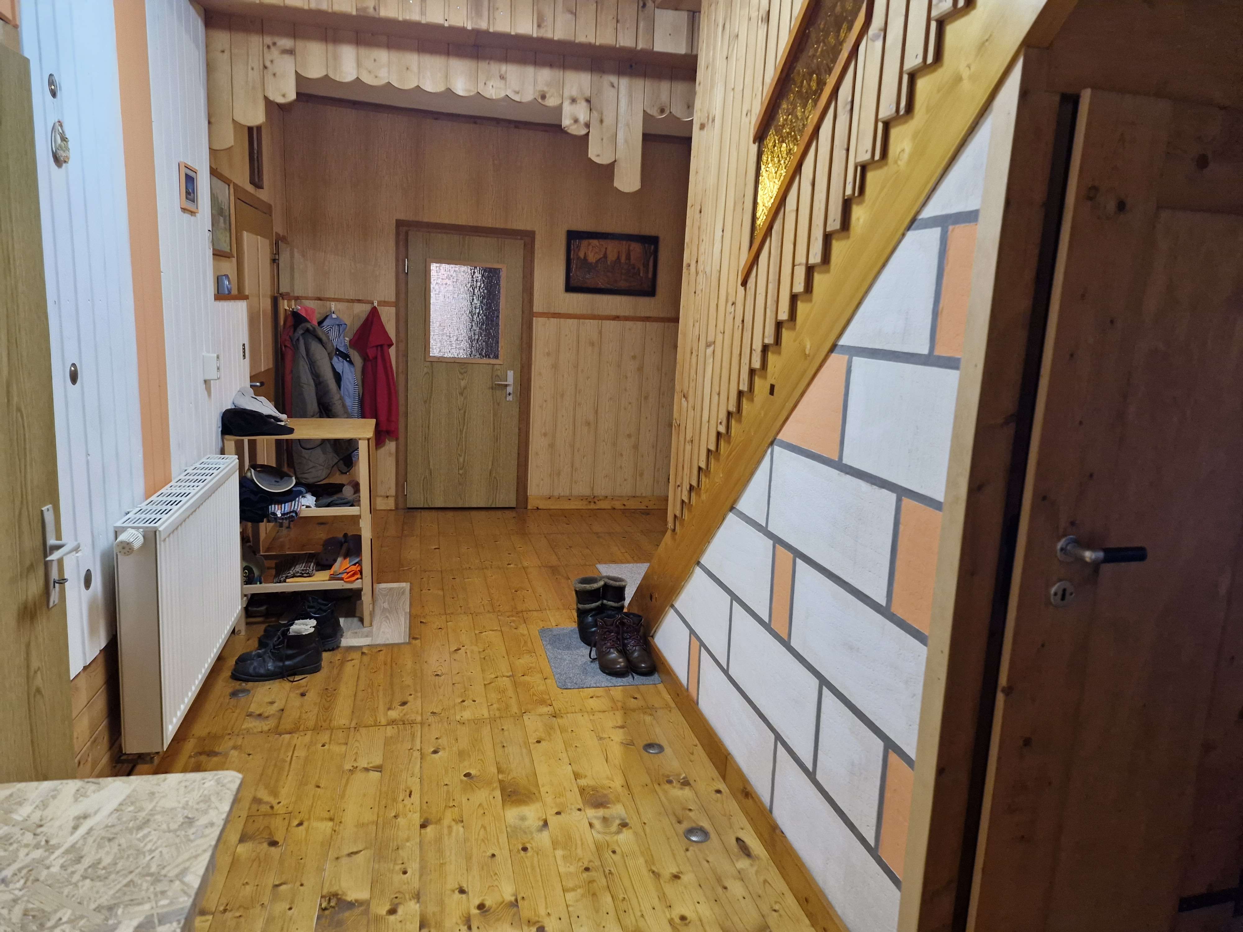 Über eine Holztreppe gelangen Sie in das Obergeschoss. Hier befindet sich auf der linken Seite ein zusätzliches WC sowie der Zugang zum Dachboden, der reichlich Stauraum bietet.