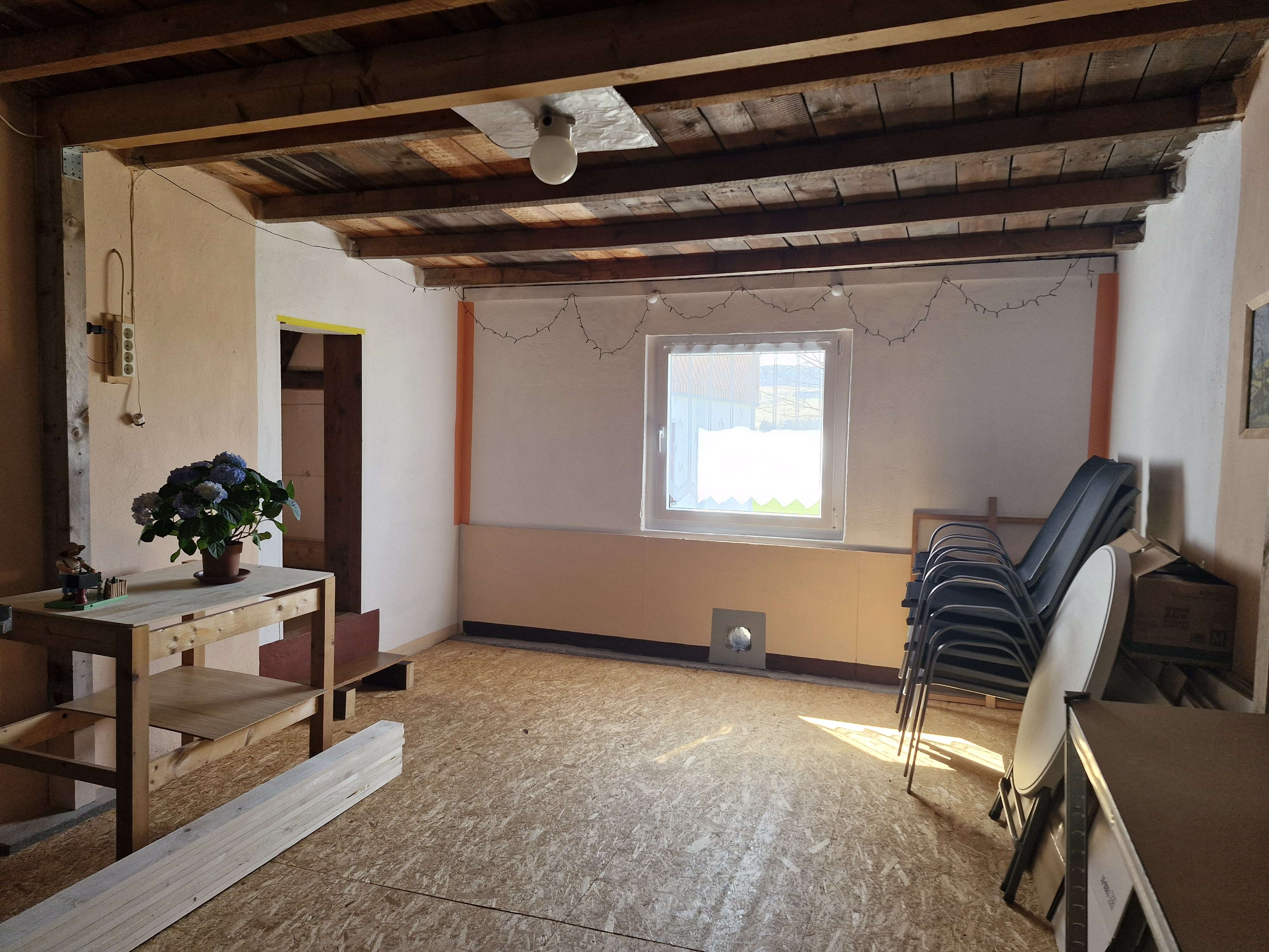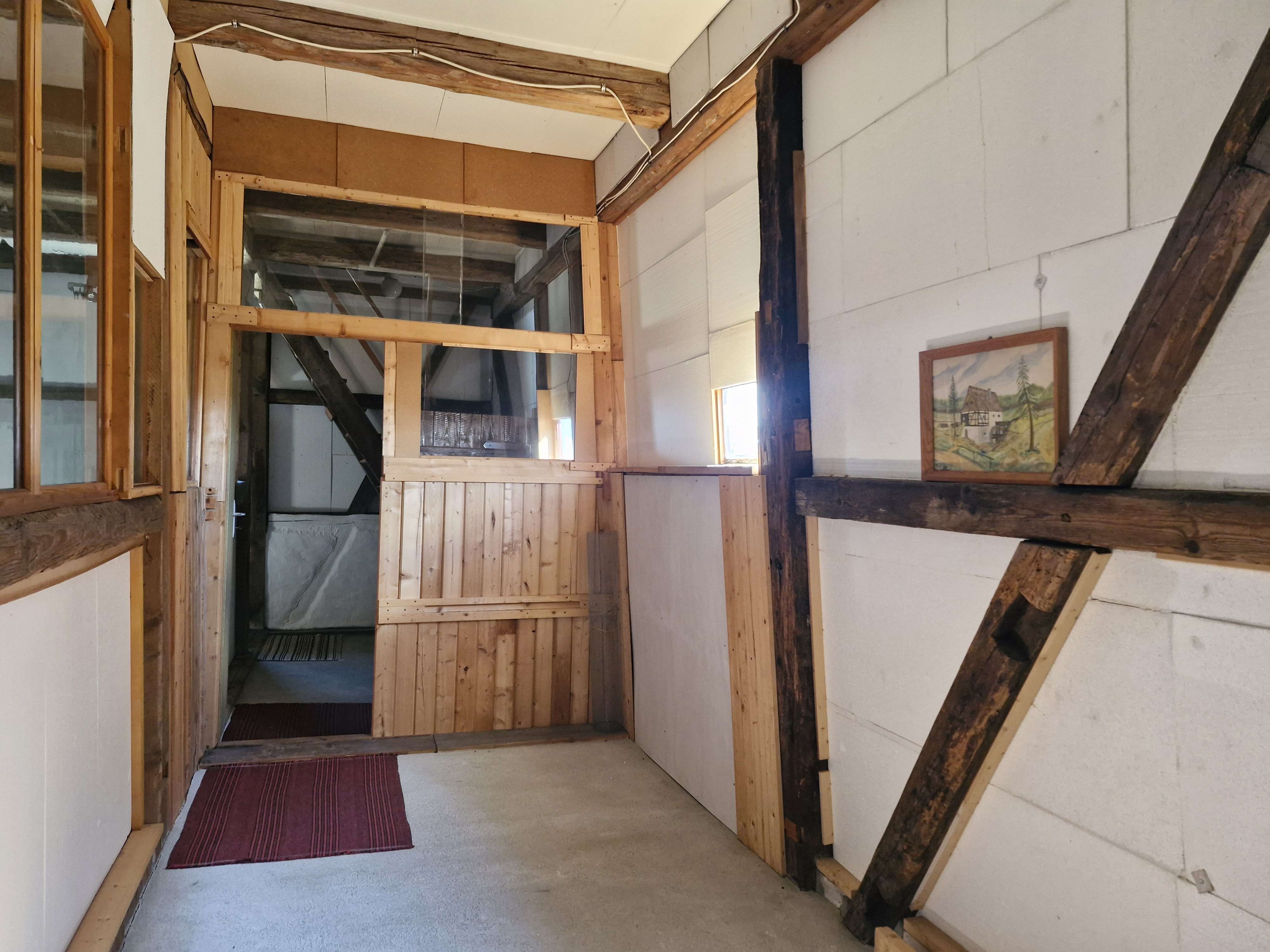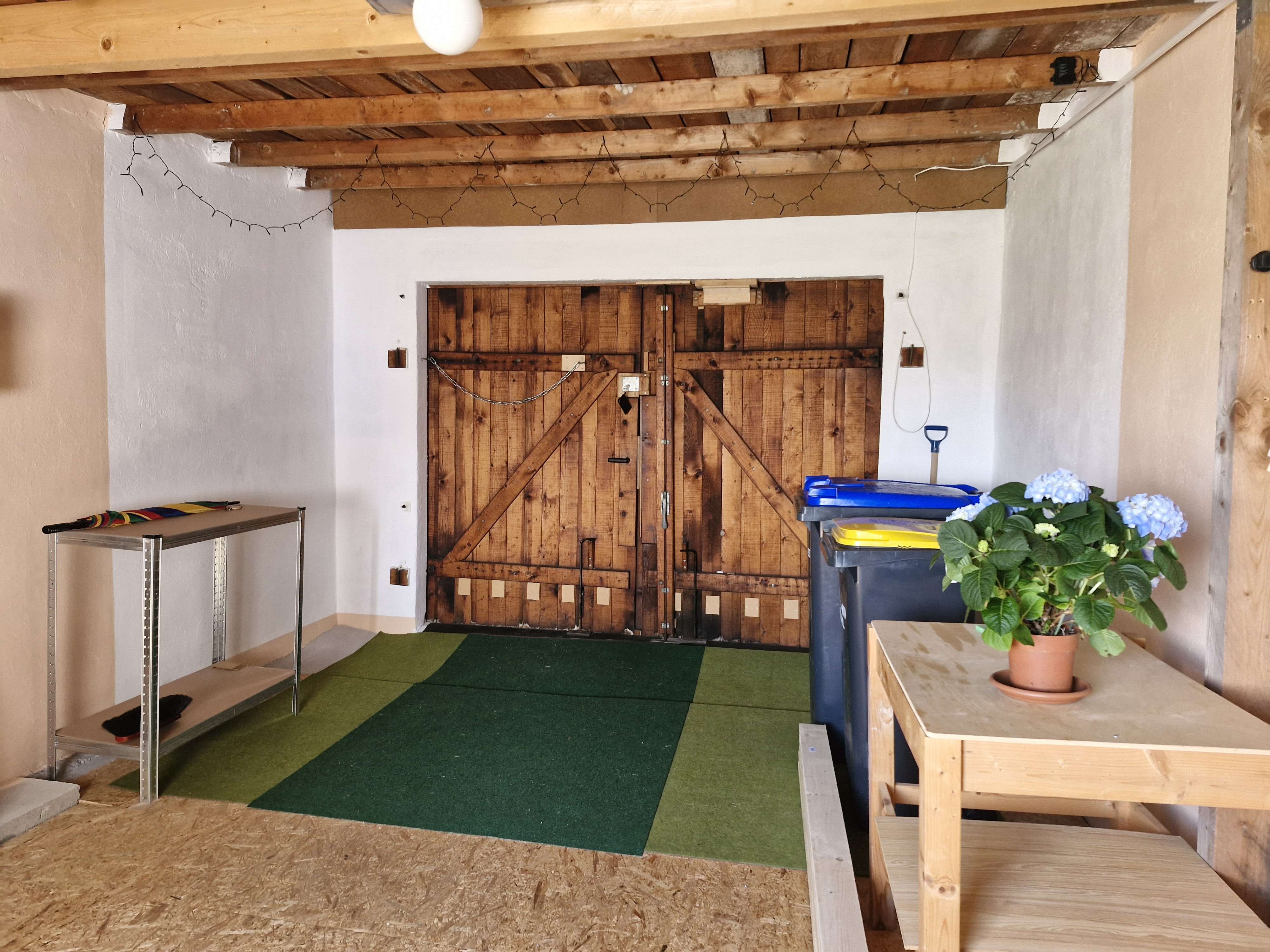 Weiterhin befinden sich im Erdgeschoss ein Waschhaus mit Anschlussmöglichkeiten für Waschmaschine und Trockner sowie die Öl-Heizung (Baujahr 1998). Die Öltanks mit einem Fassungsvermögen von ca. 4.000 Litern sind in einem separaten Raum untergebracht. Ergänzt wird das Raumangebot durch eine geräumige Werkstatt mit Kaminofen. Zudem besteht vom Flur aus Zugang zu einem kleinen Gewölbekeller, der ausschließlich als Lagerfläche genutzt wird. Eine weitere Tür führt in die angrenzende Scheune, die viel Platz für Gartengeräte und weitere Utensilien bietet und zudem eine Garage integriert.
