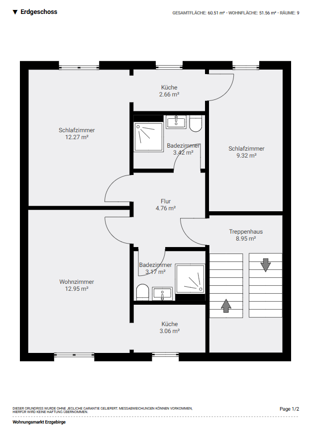 Das Hausgeld für die drei Wohnungen beläuft sich aktuell auf ca. 455€ pro Monat inklusive der Instandhaltungsrücklage, wovon rund 2/3 auf die Mieter umlegbar sind.